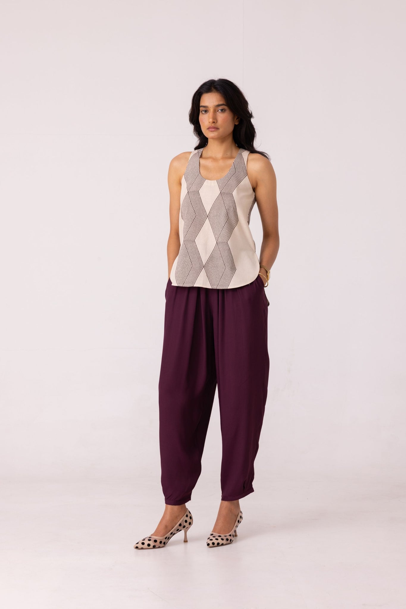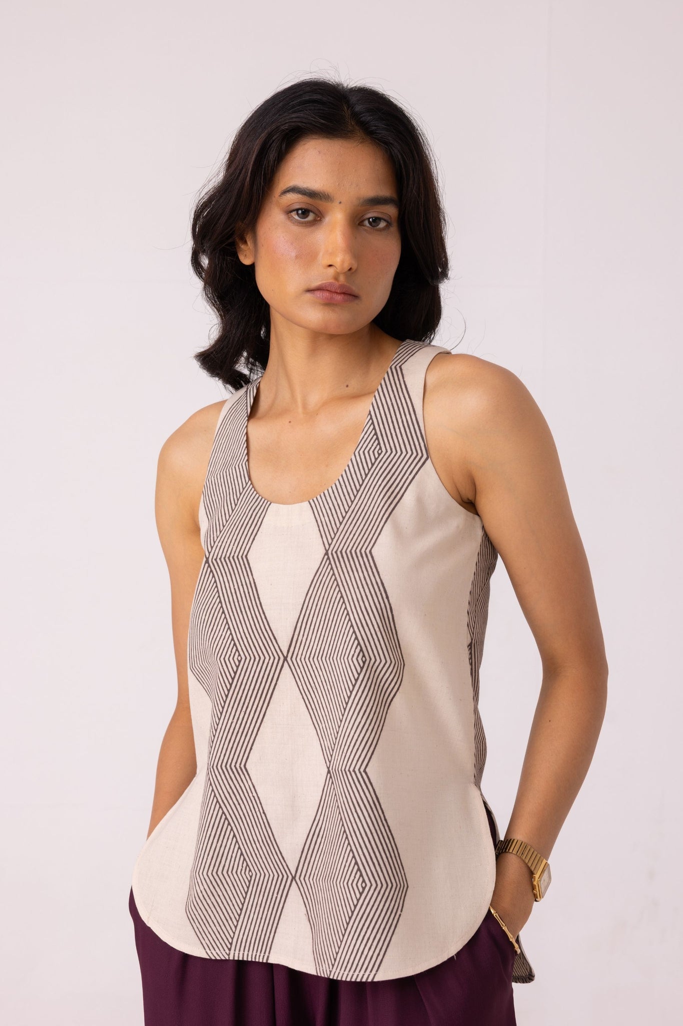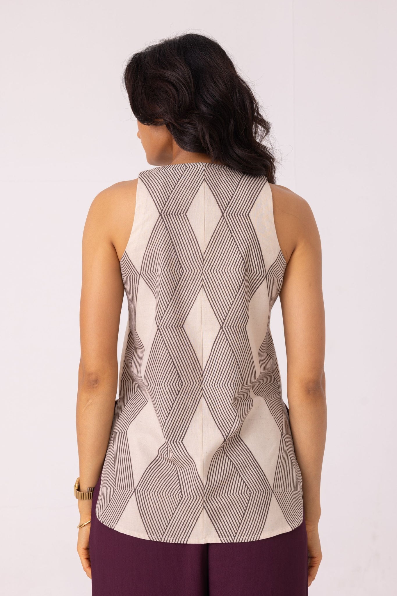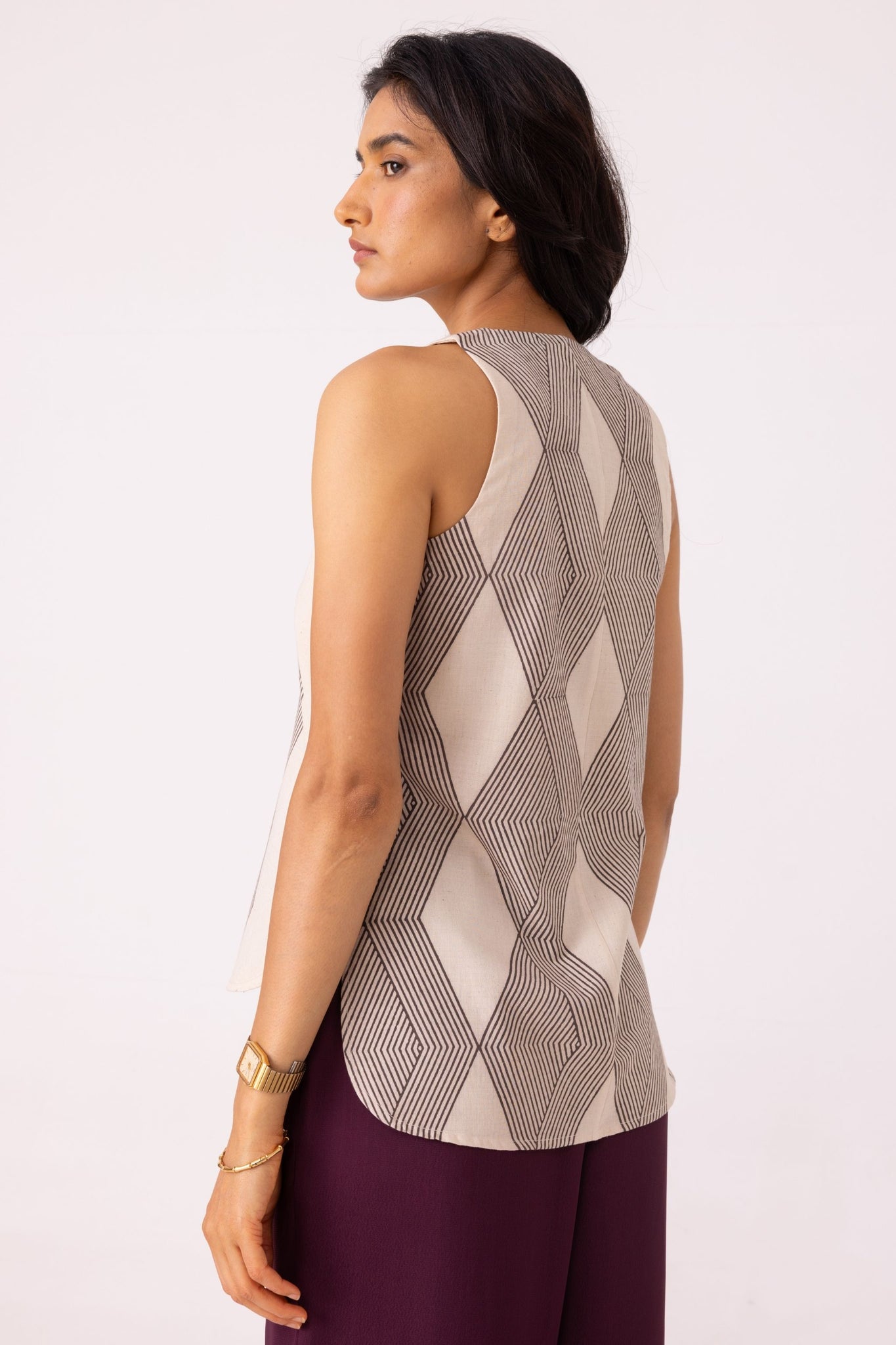 Scoop at the front, incut at the back - the Emma top has been part of The Summer House pattern library for over a decade. The facings at the armhole and neckline are the quiet craft detail that separates a well-made top from one that merely looks it. Side slits, a high-low hem, and an ease that is equal measures suave.