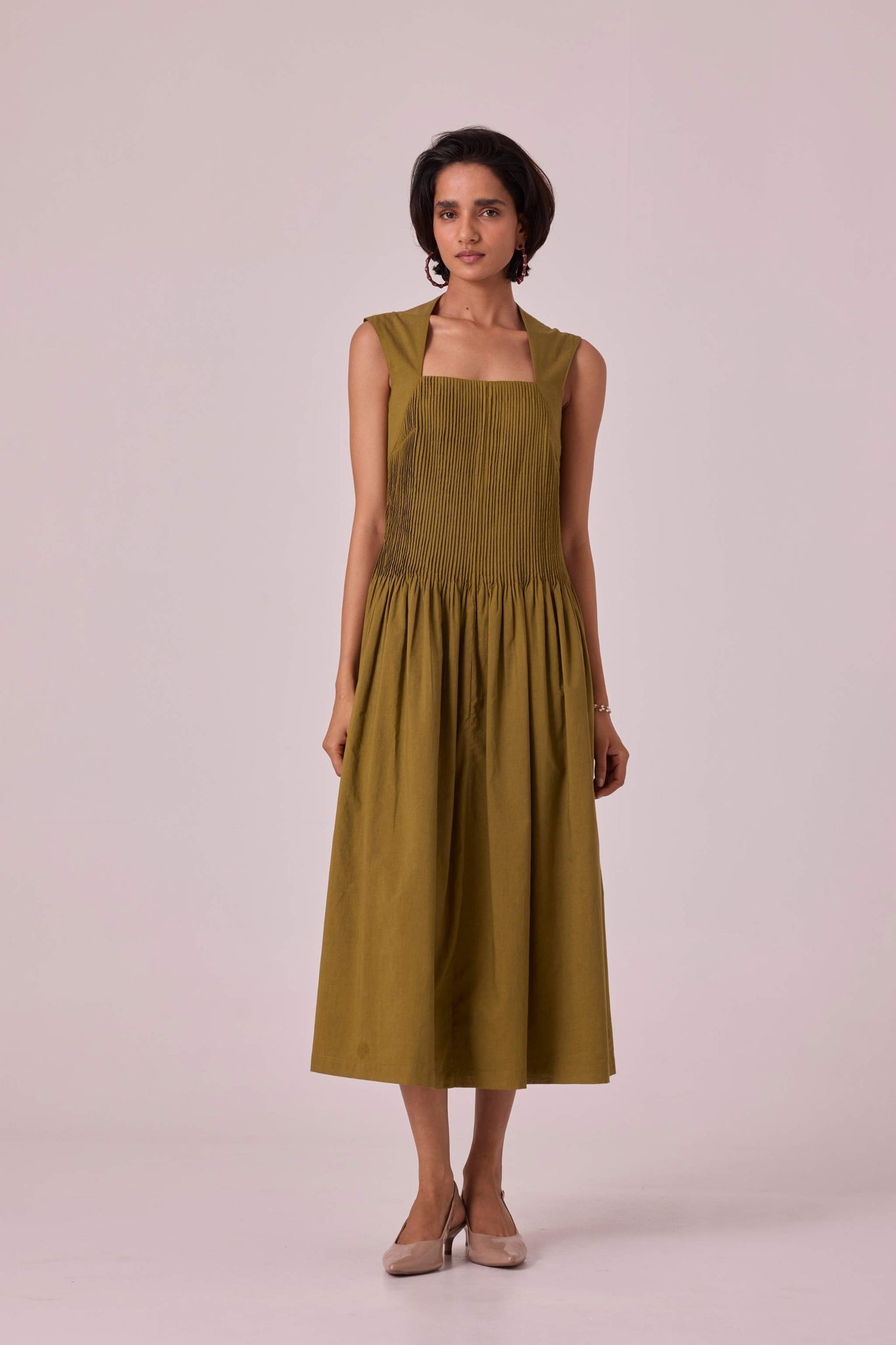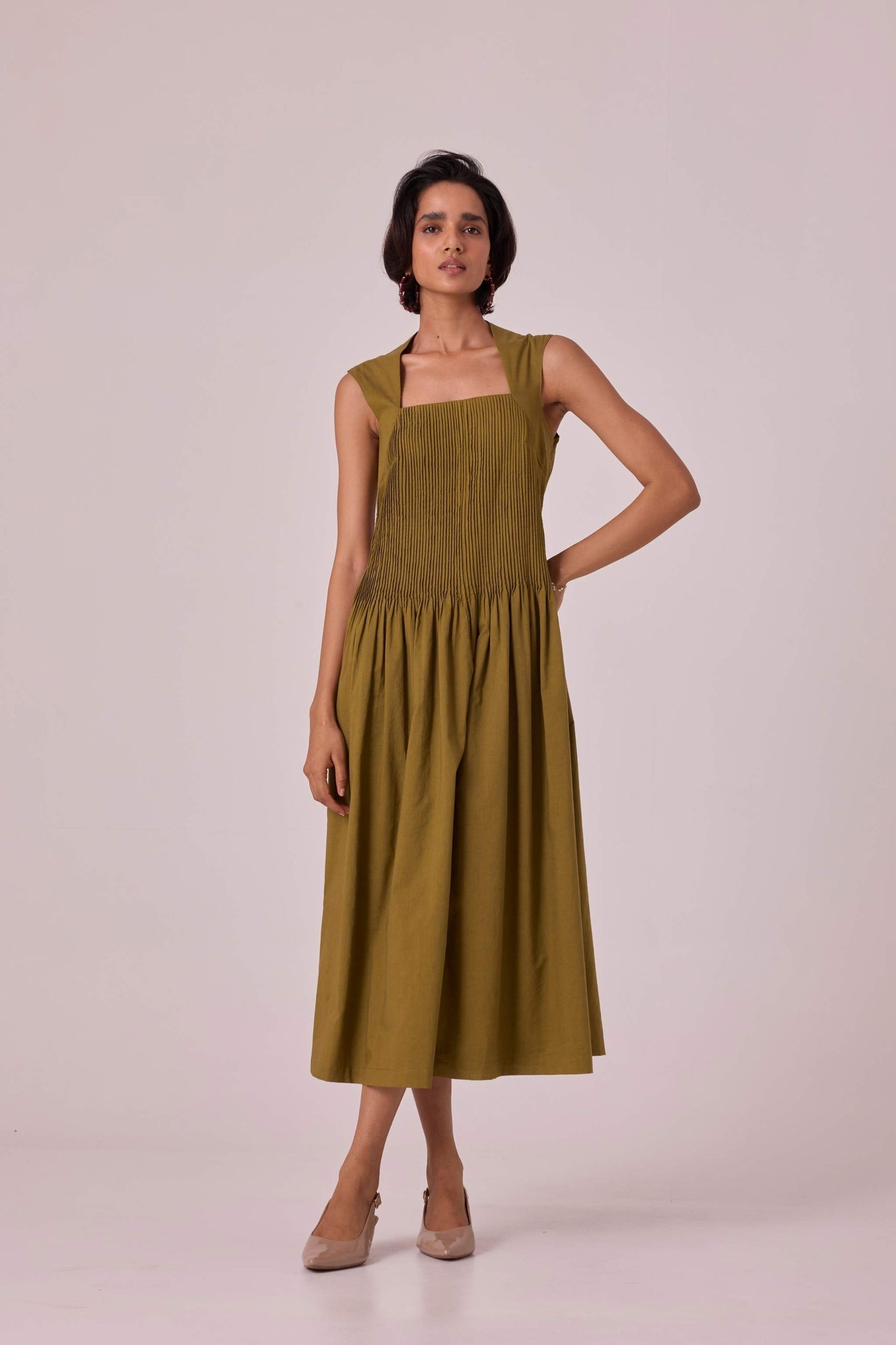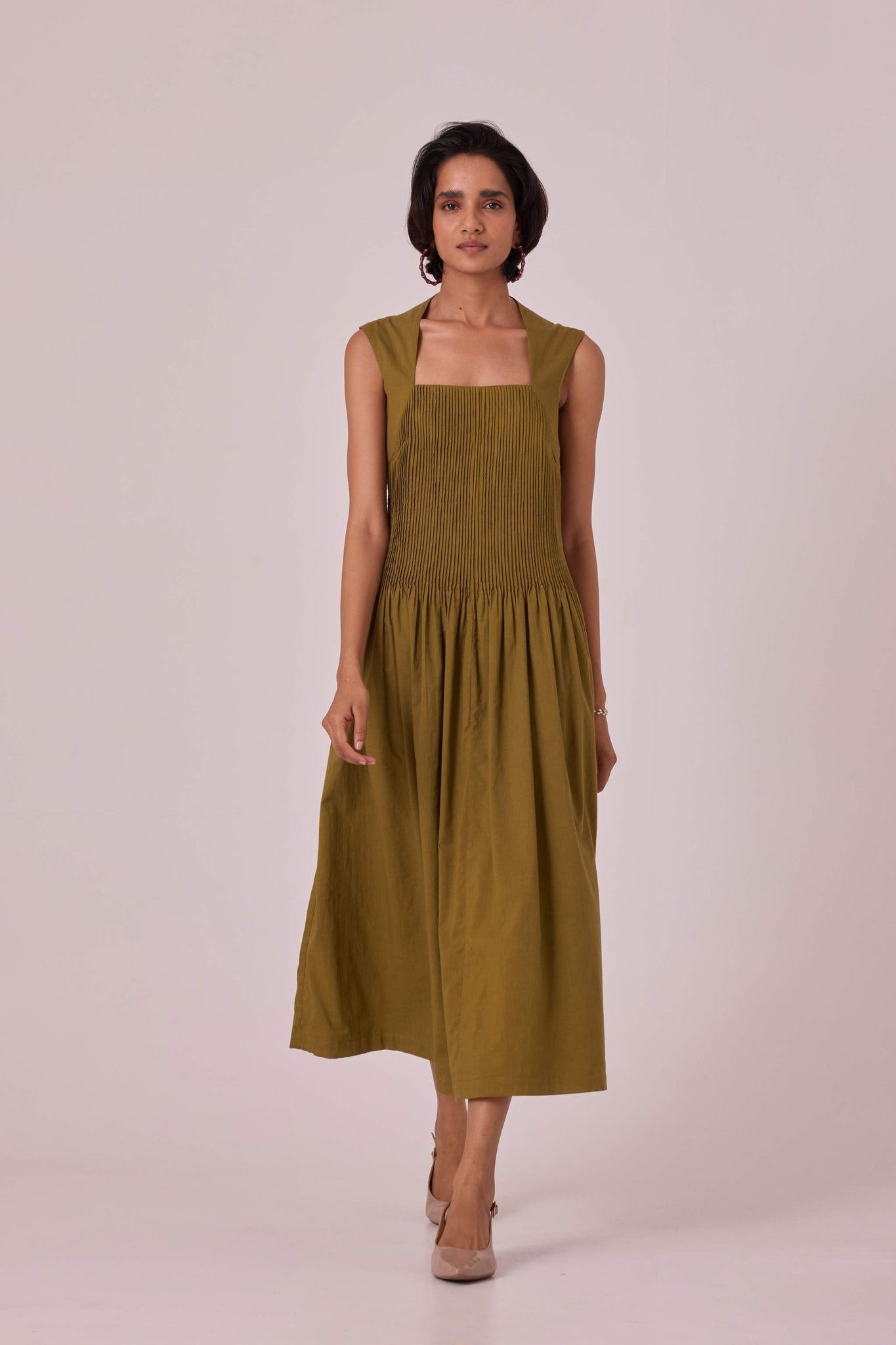 Ziva Olive Pleated Midi Dress