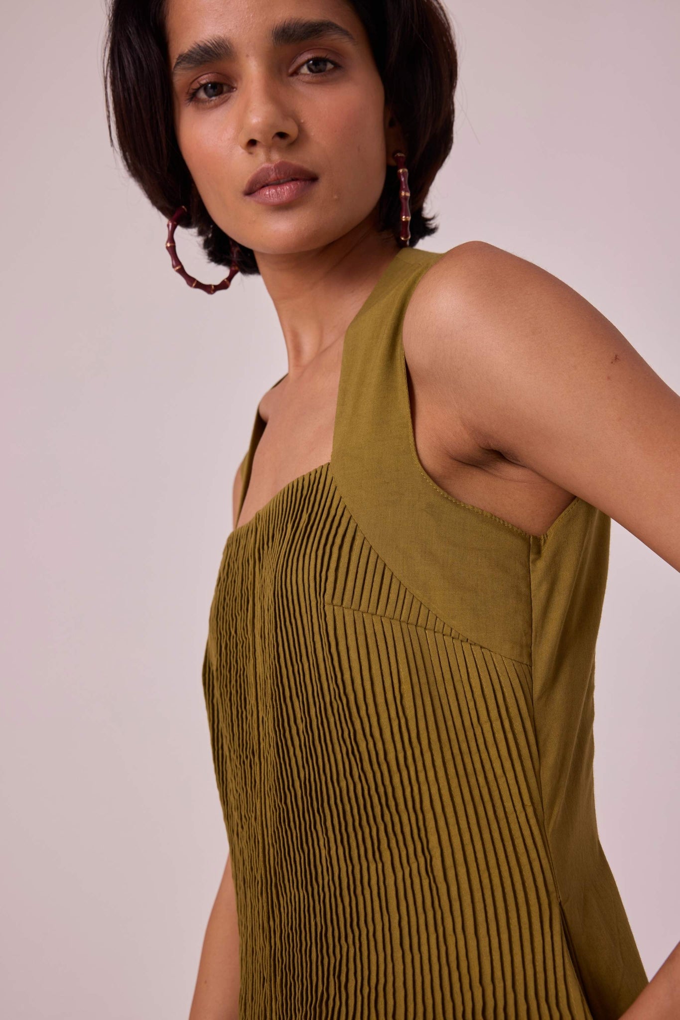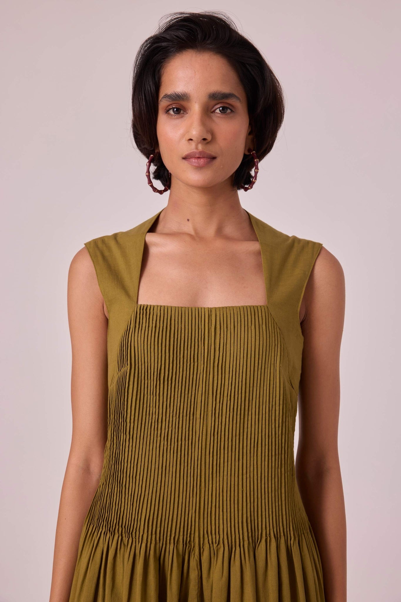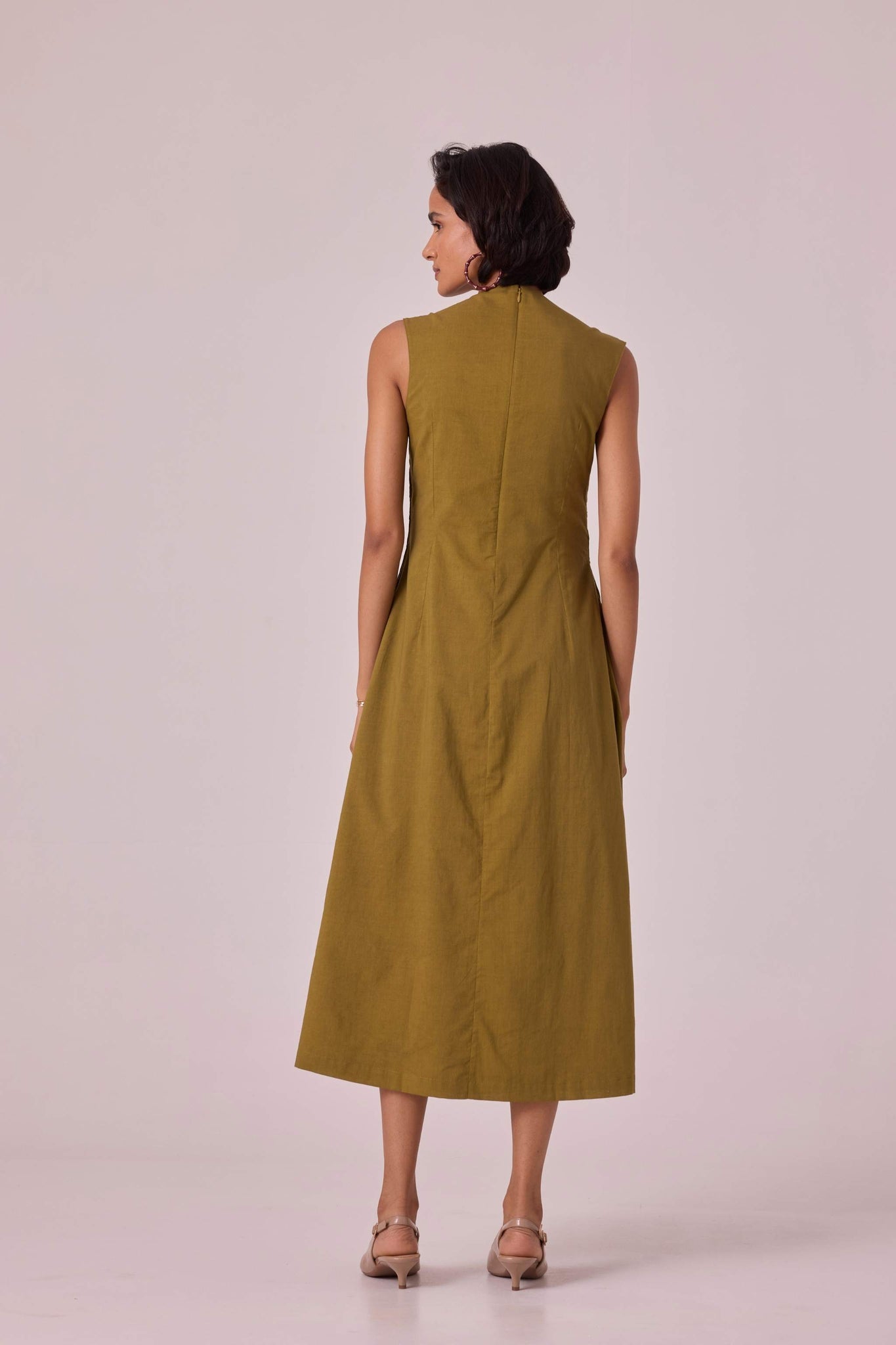 Ziva Olive Pleated Midi Dress