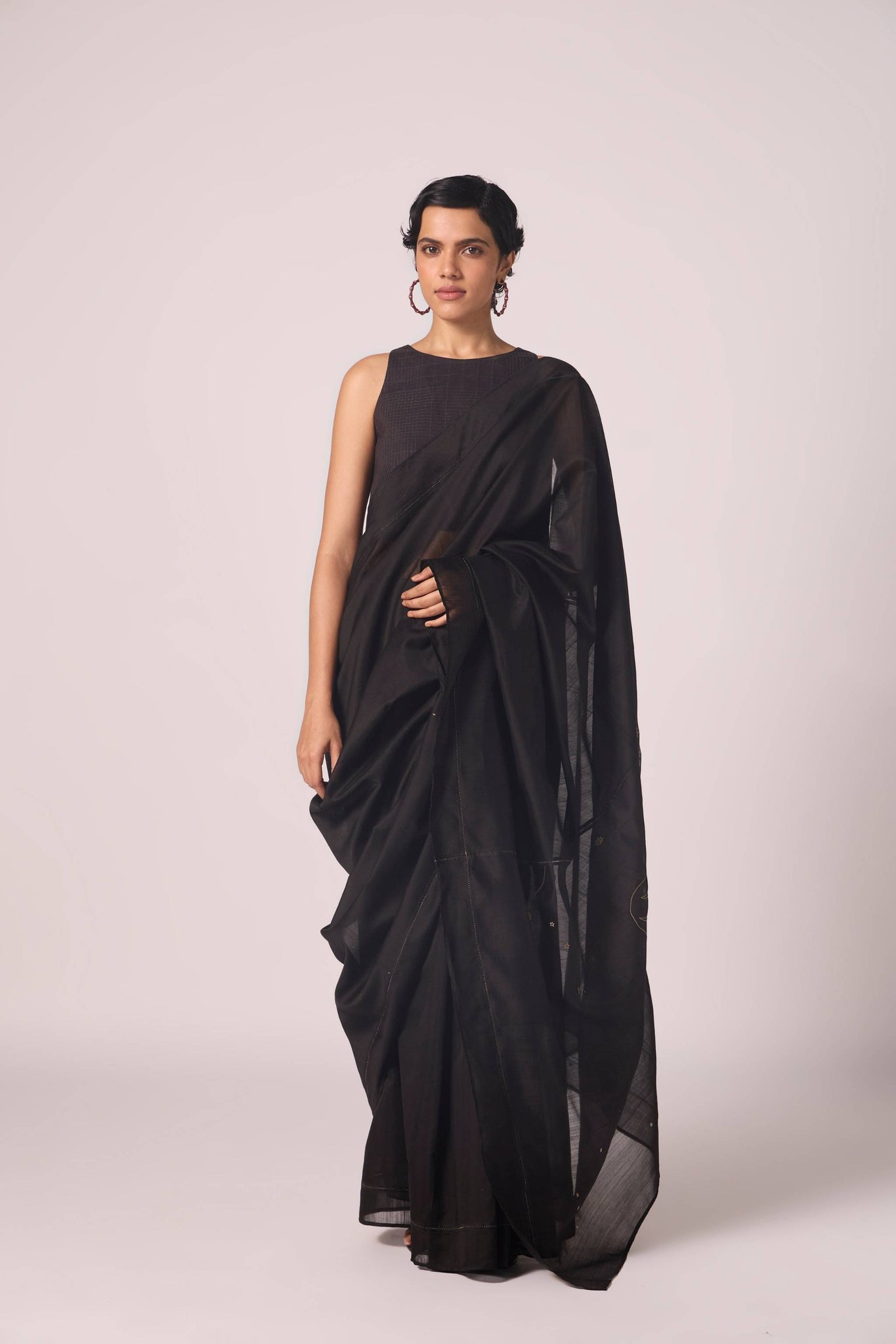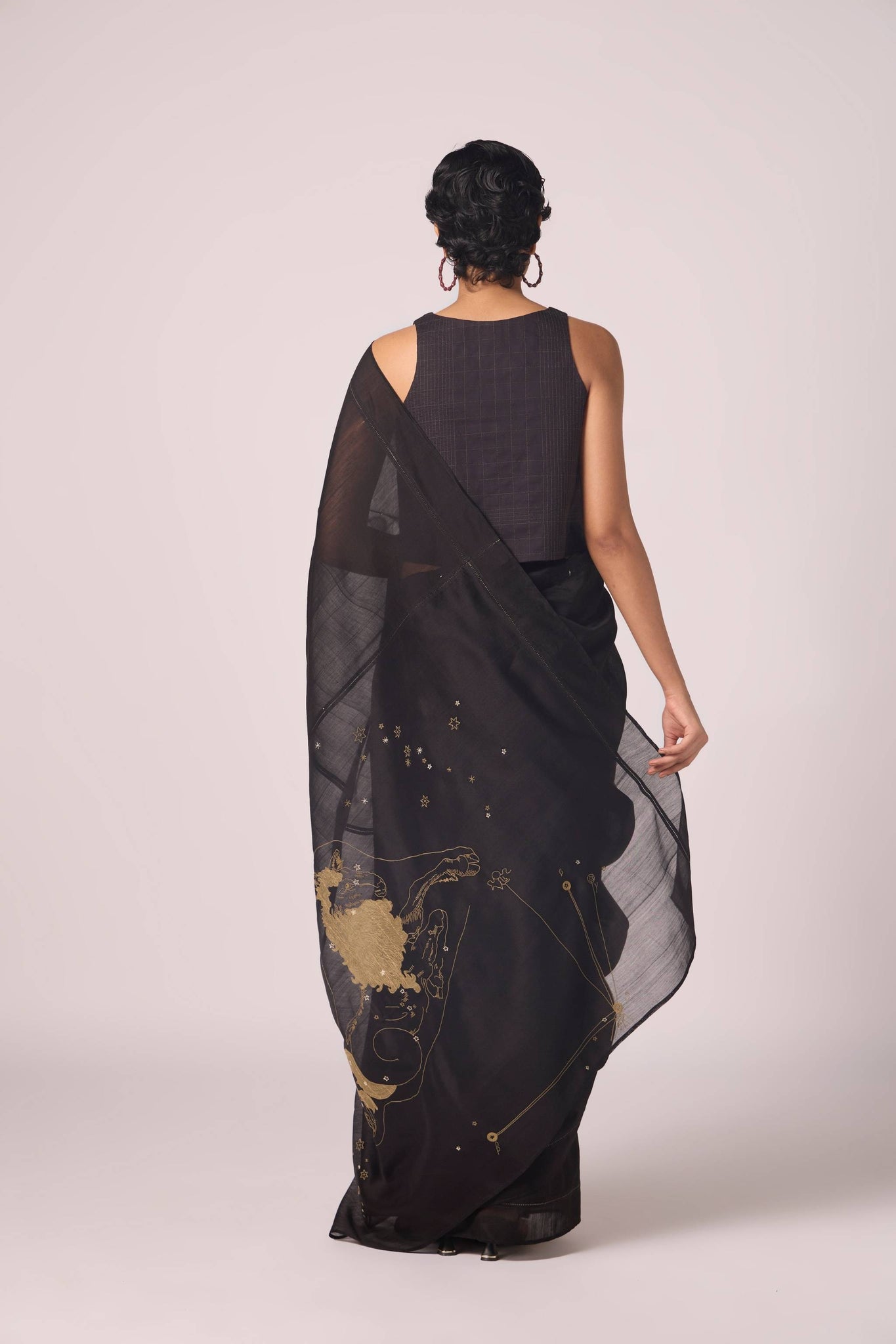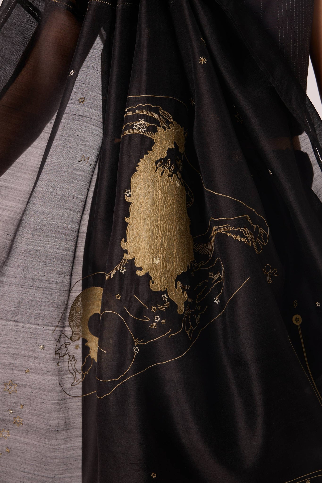 Zuben Zodiac Black Handwoven Embroidered Saree