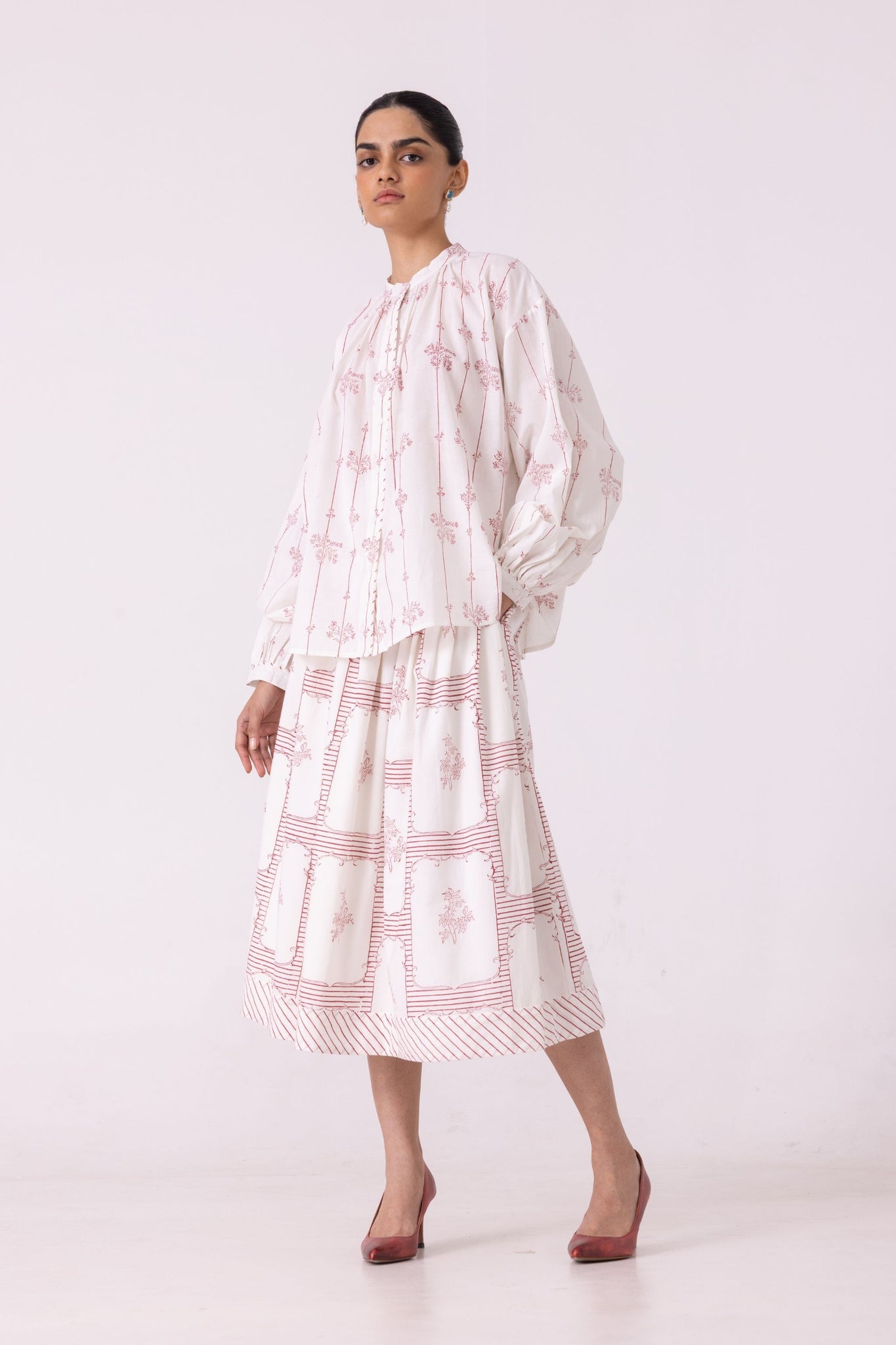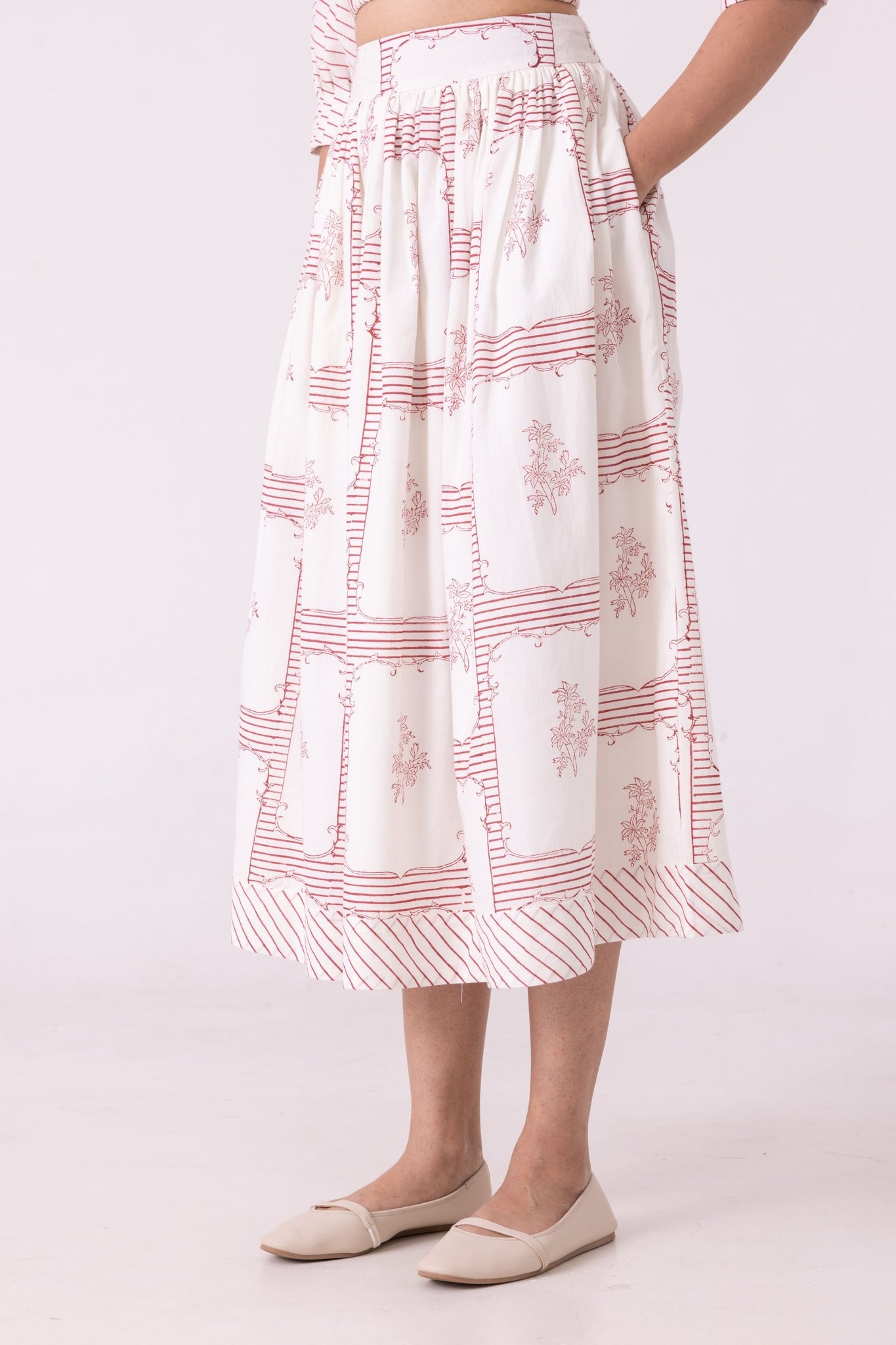 Maud Red Hand Printed Skirt