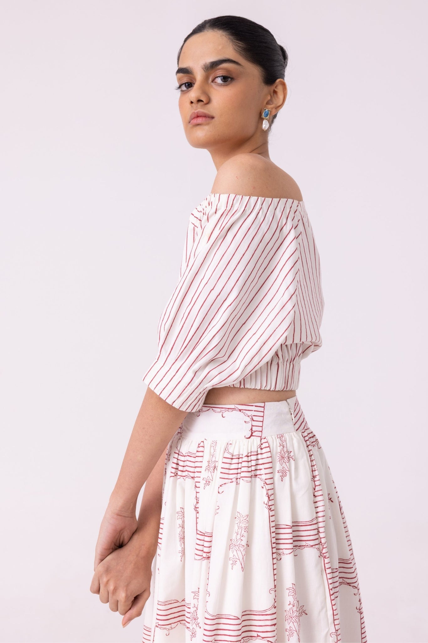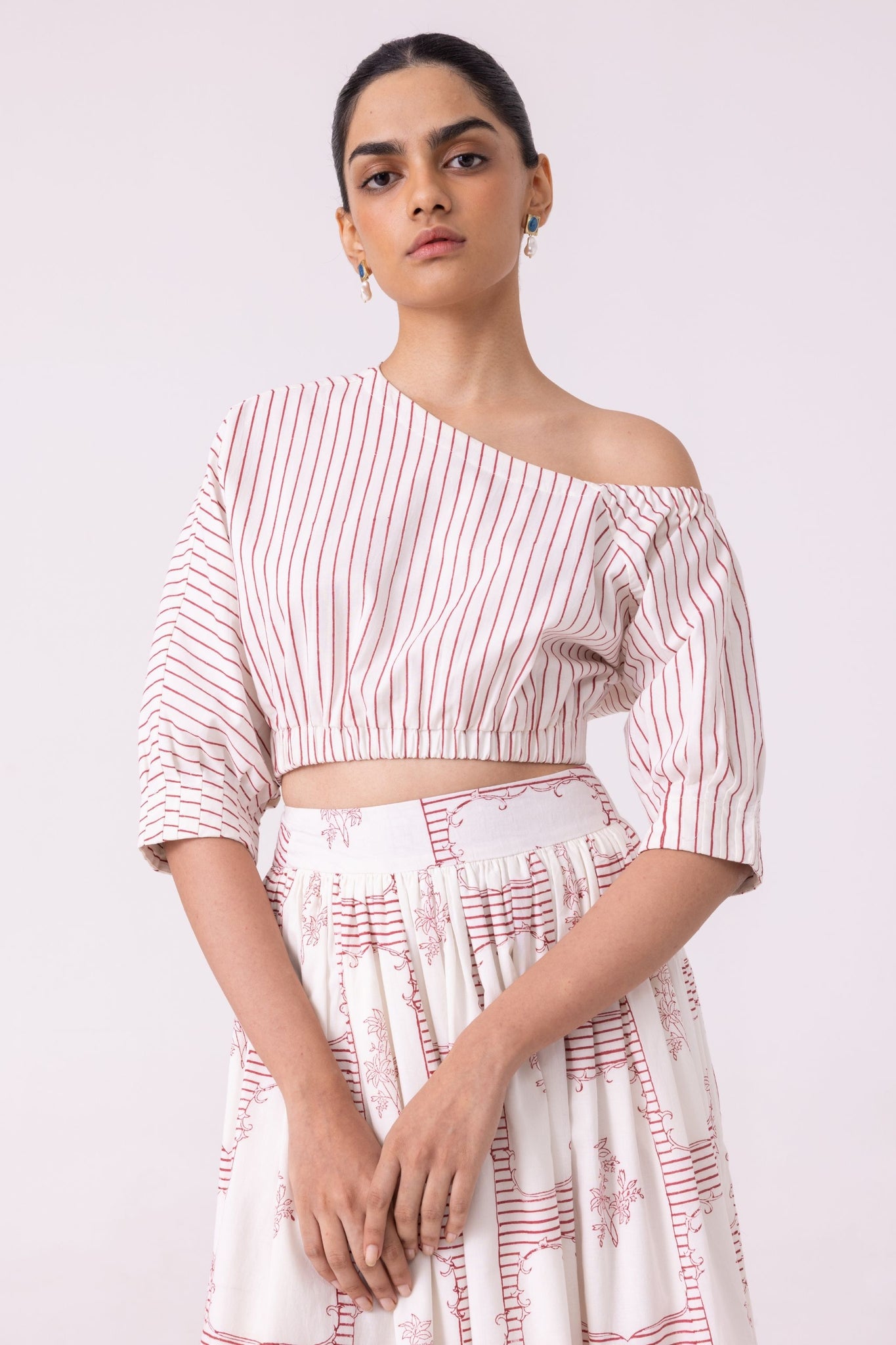 Gaya Red Stripe Hand Printed Top