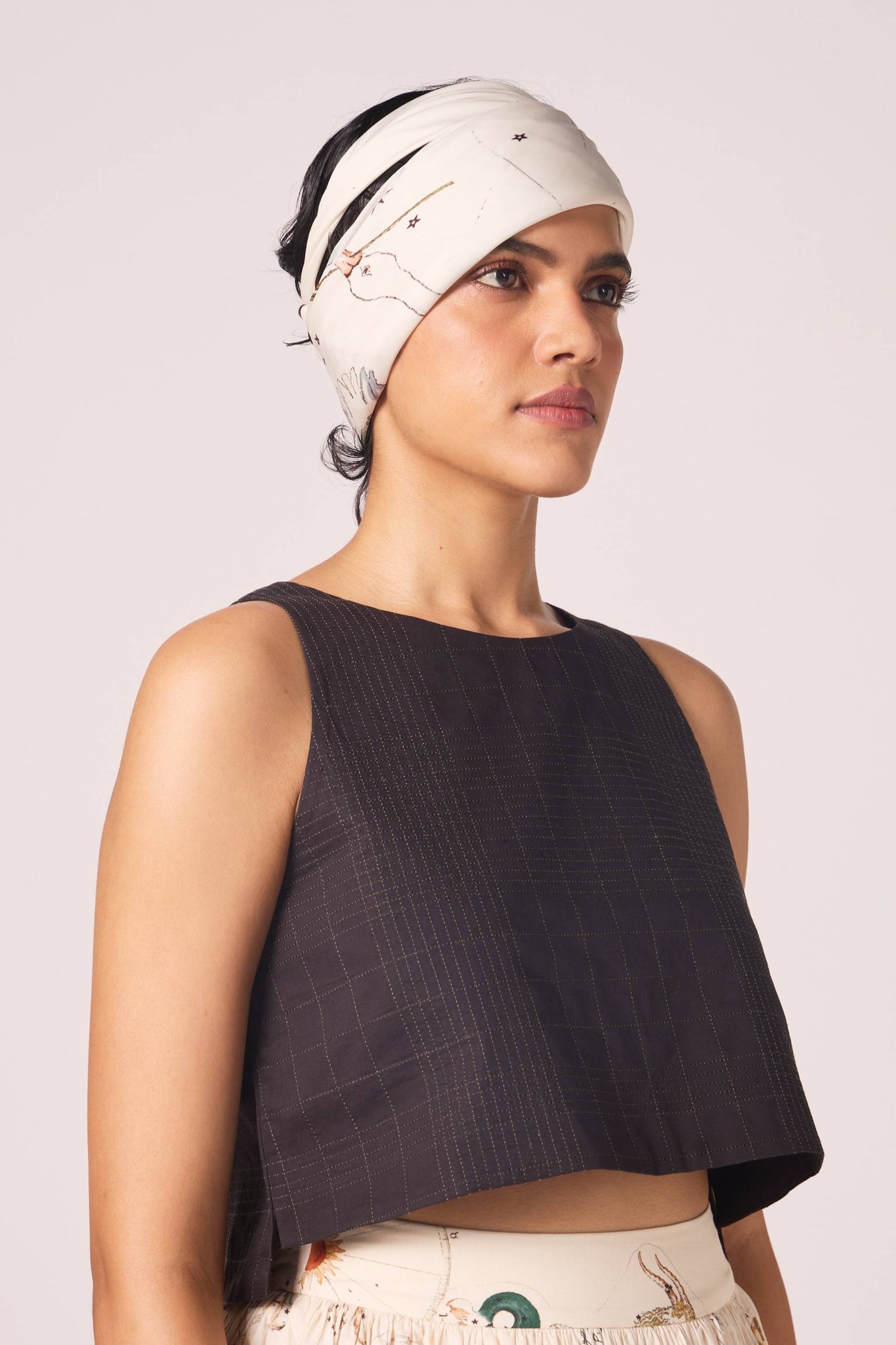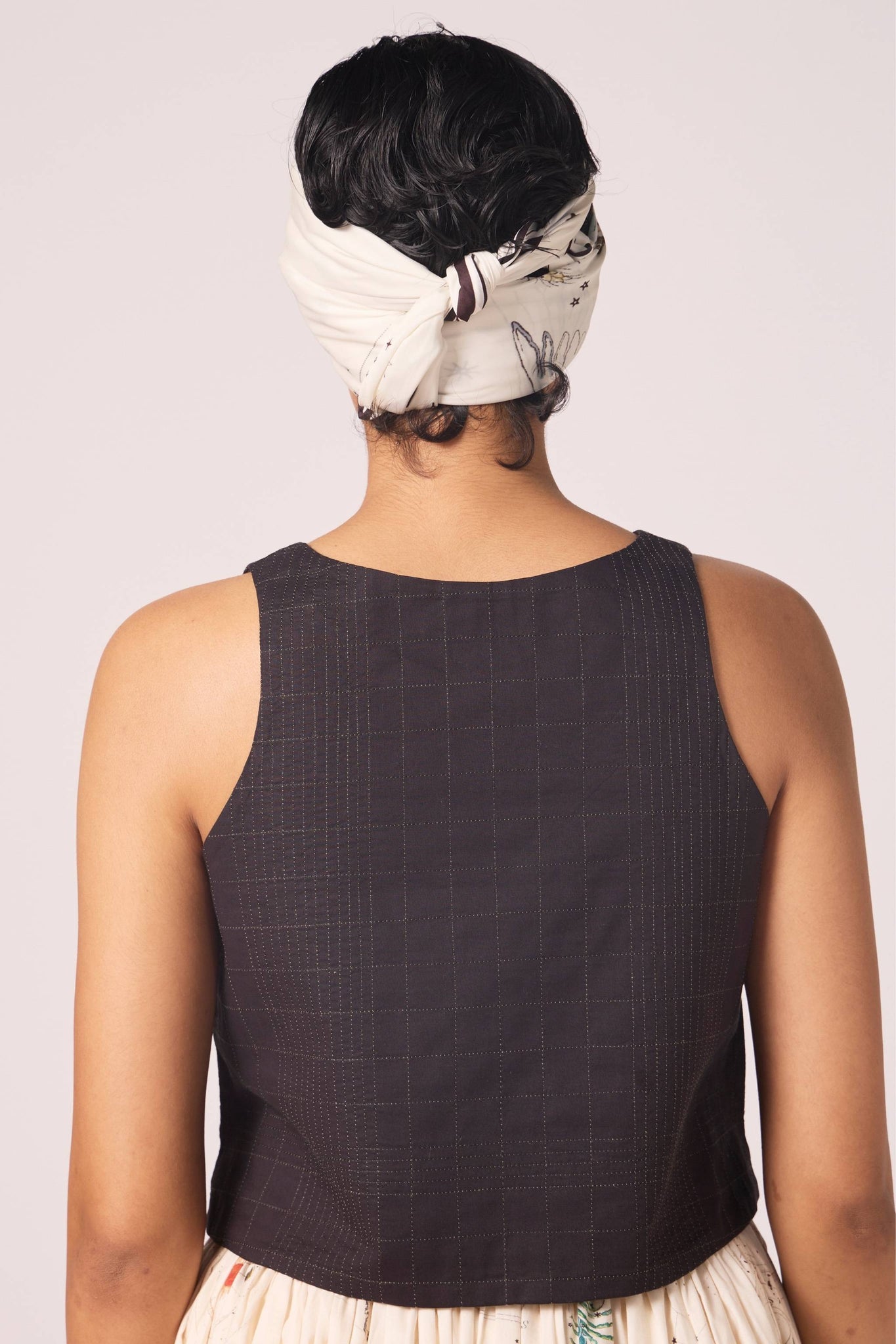 Texture is the story here. Quilted cotton gives the surface quiet depth, while the cropped silhouette keeps it sharp. A top that layers effortlessly, yet holds its own.