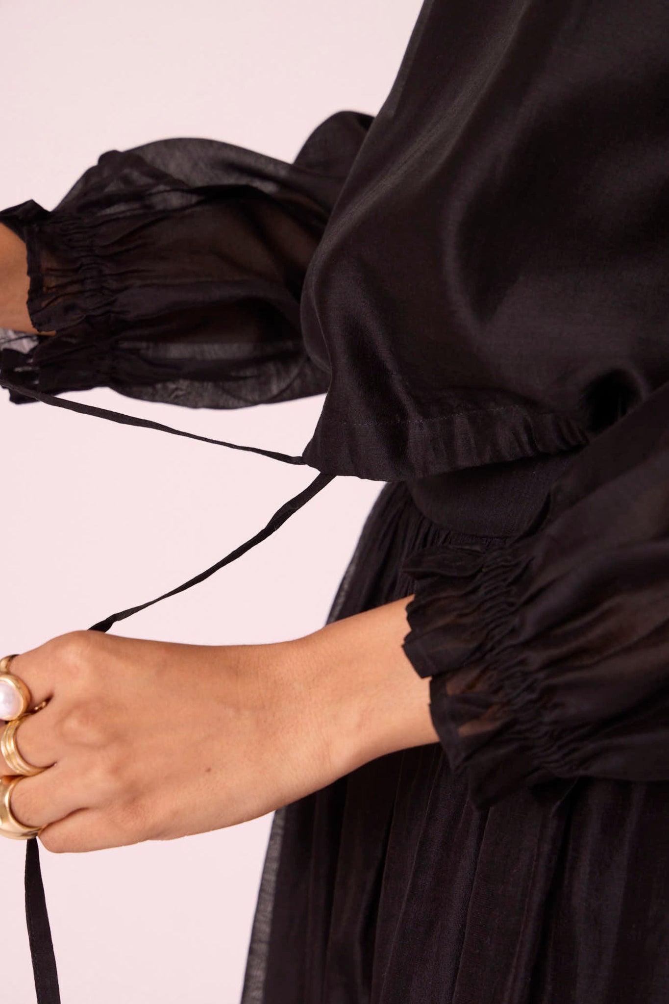 A refined silhouette in luminous Chanderi, the Atlas top is shaped with a subtle drawstring waist that allows the form to shift with intention. Elasticated sleeve details and a clean back fastening bring measured structure to a piece that moves effortlessly between everyday and festive wear.