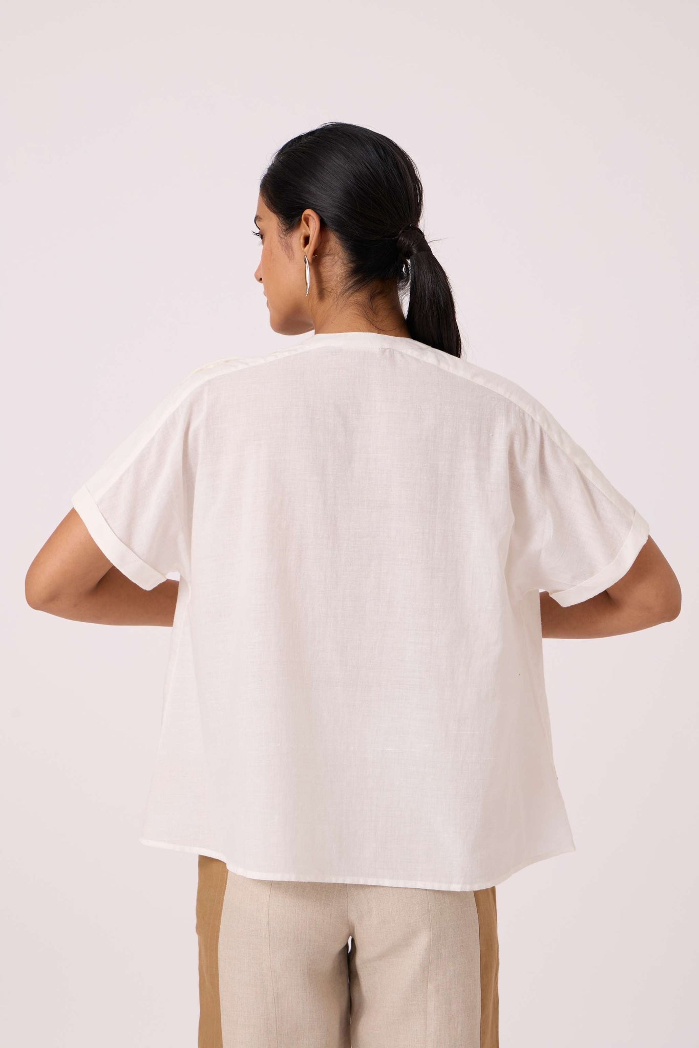 - Slim band collar, with gentle gathers at the neck & shoulder
