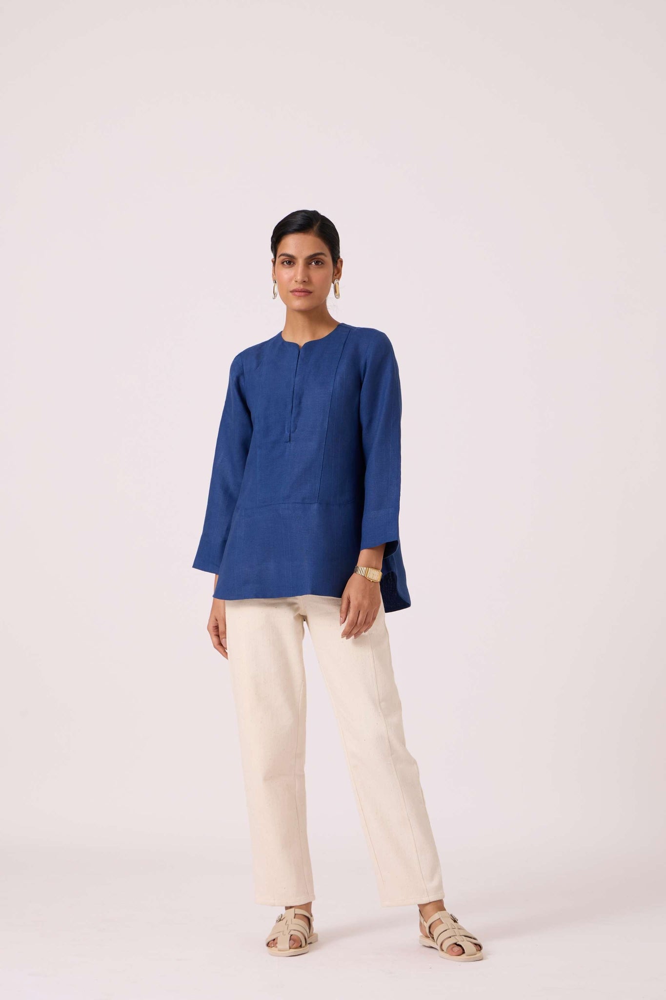 Oceania Ink Blue Linen Top