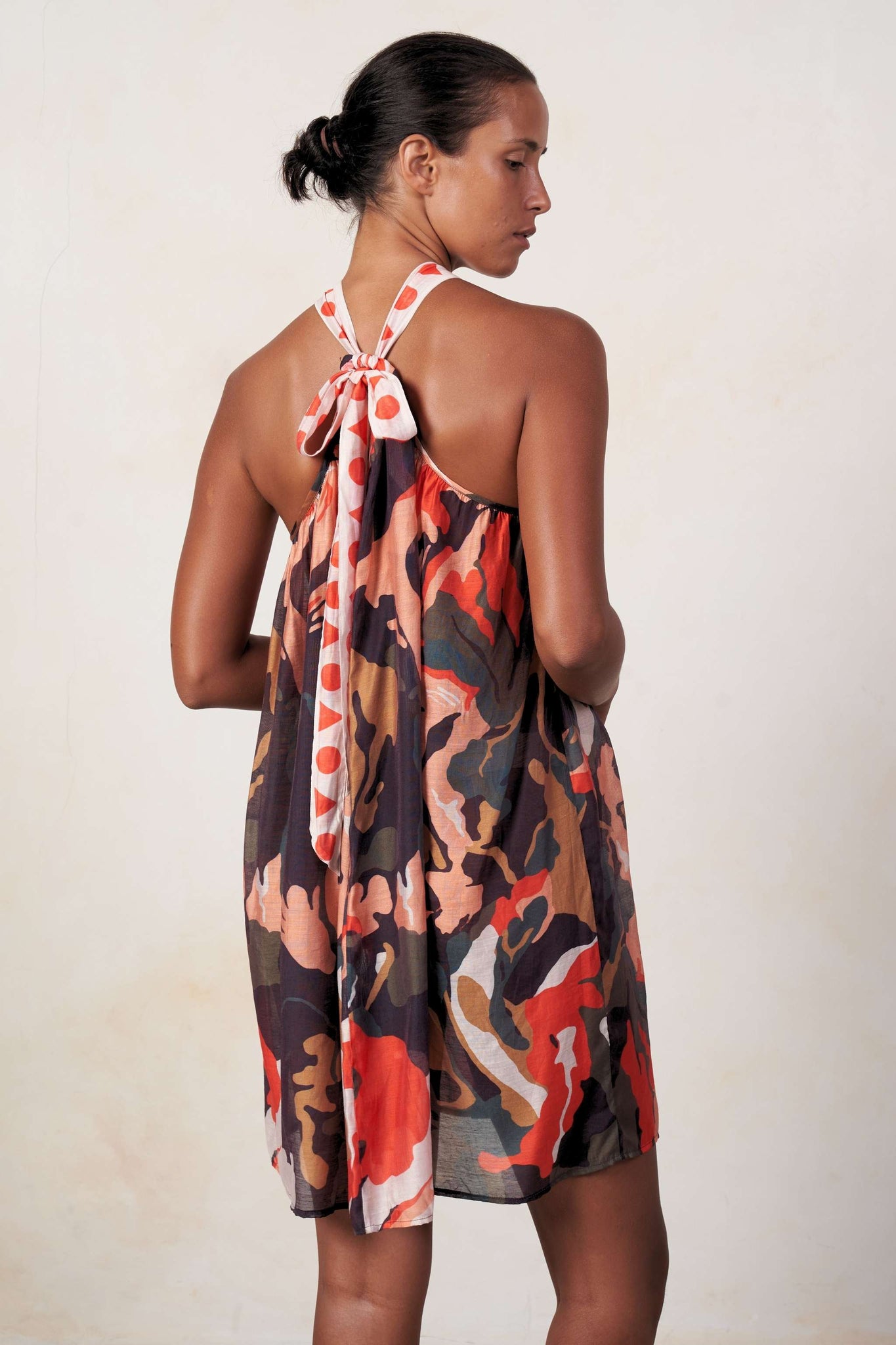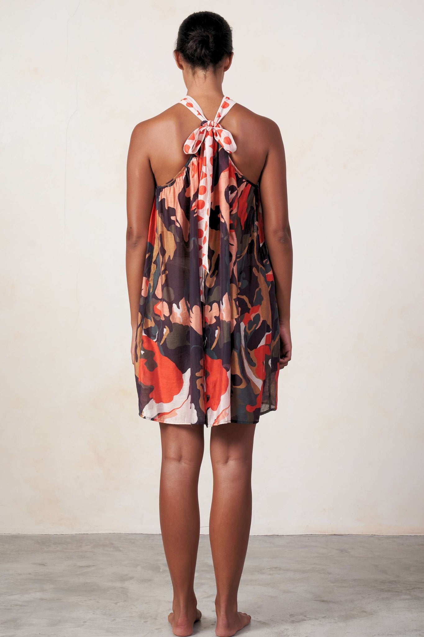 A Mini Dress Cover Up, featuring an adjustable neck tie on the back for a customizable fit, it's the perfect blend of style and comfort for your beach or poolside.