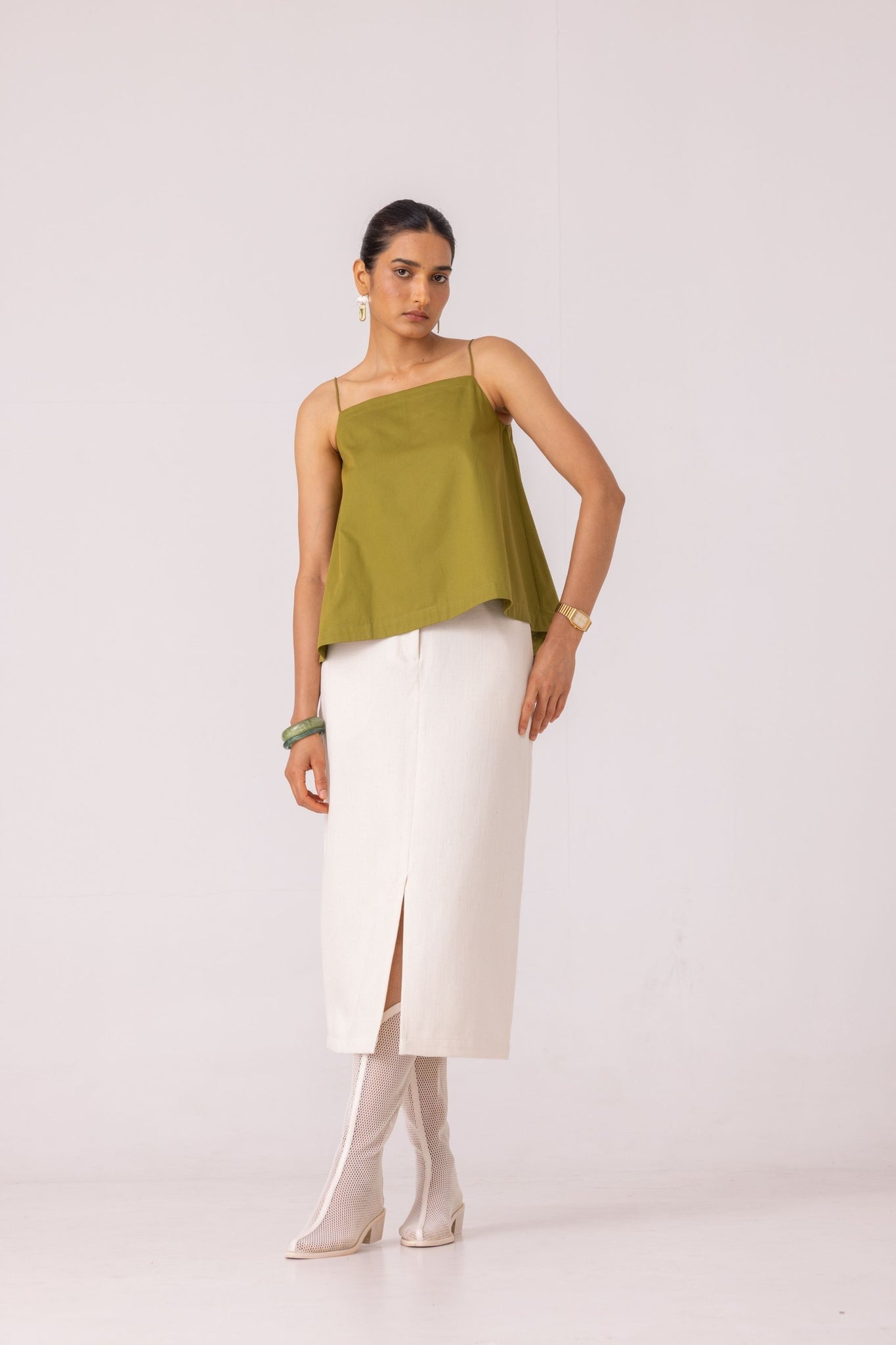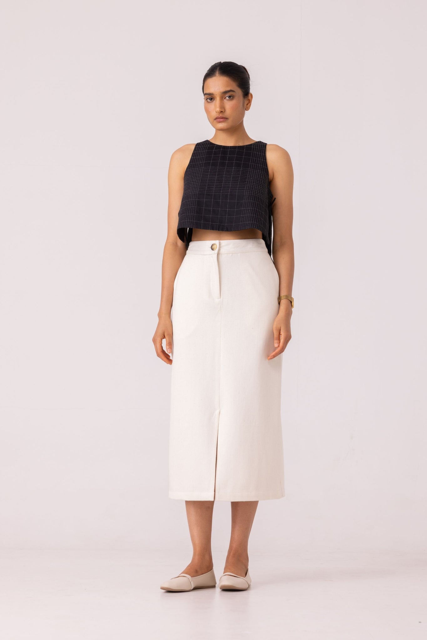 Roxanne Off White Handwoven Denim Skirt