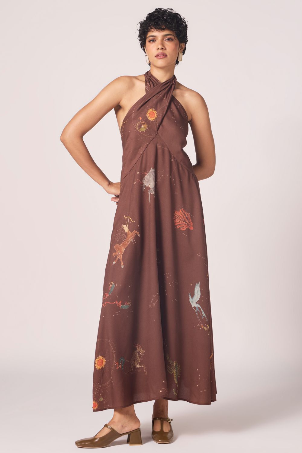 Saira Brown Zodiac Print Maxi Dress