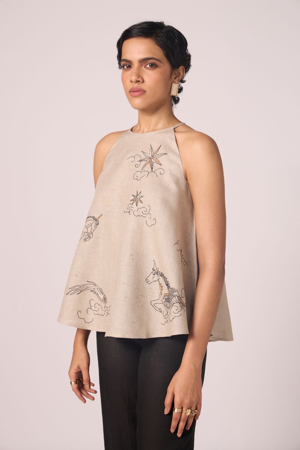Maarah Beige Linen Halter Top