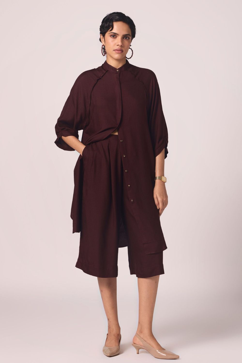 Braboune Wine Silk Tunic Set