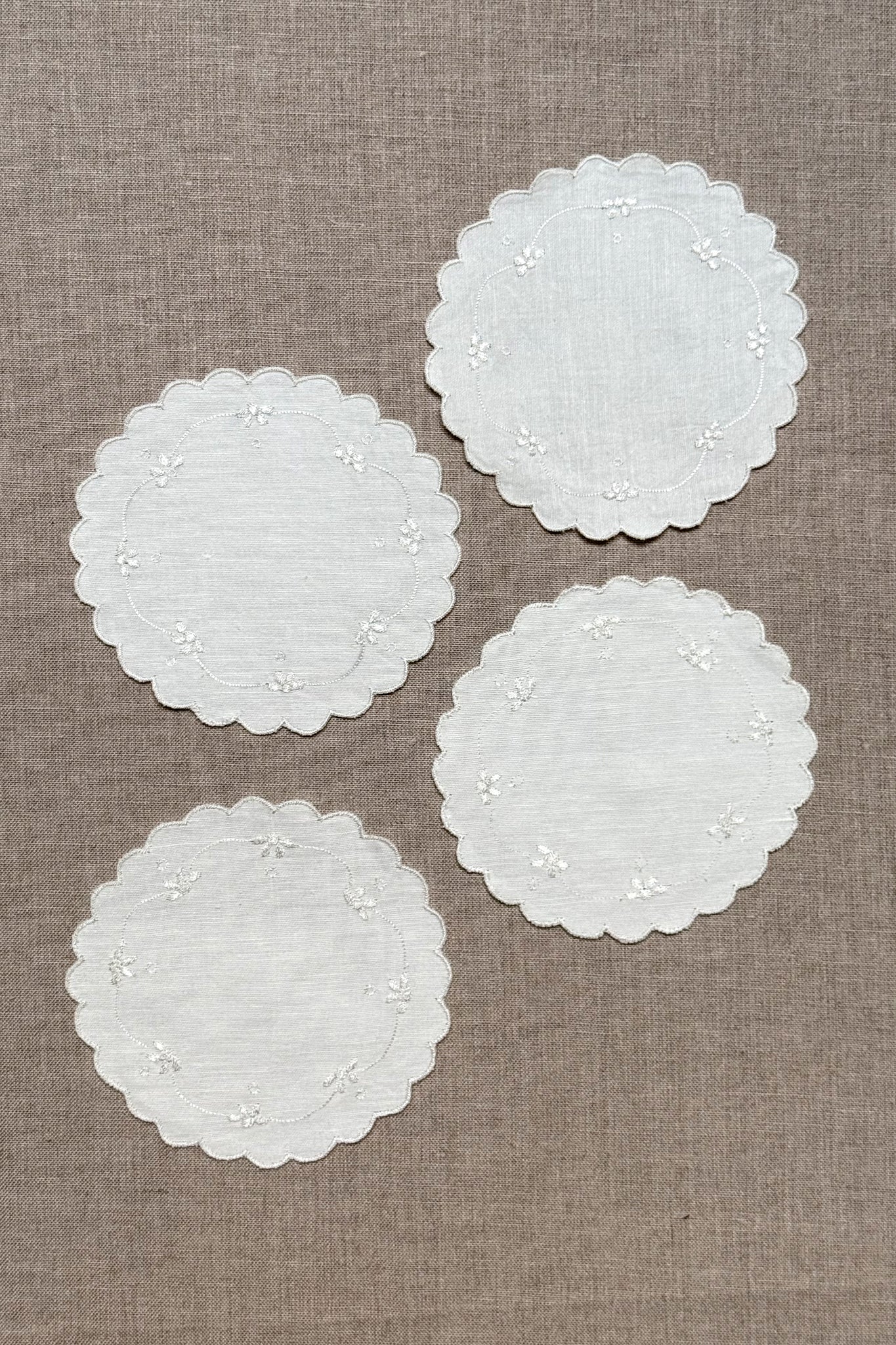 These hand-embroidered coasters combine practicality with artistry, making them perfect for gifting or enhancing your table decor.