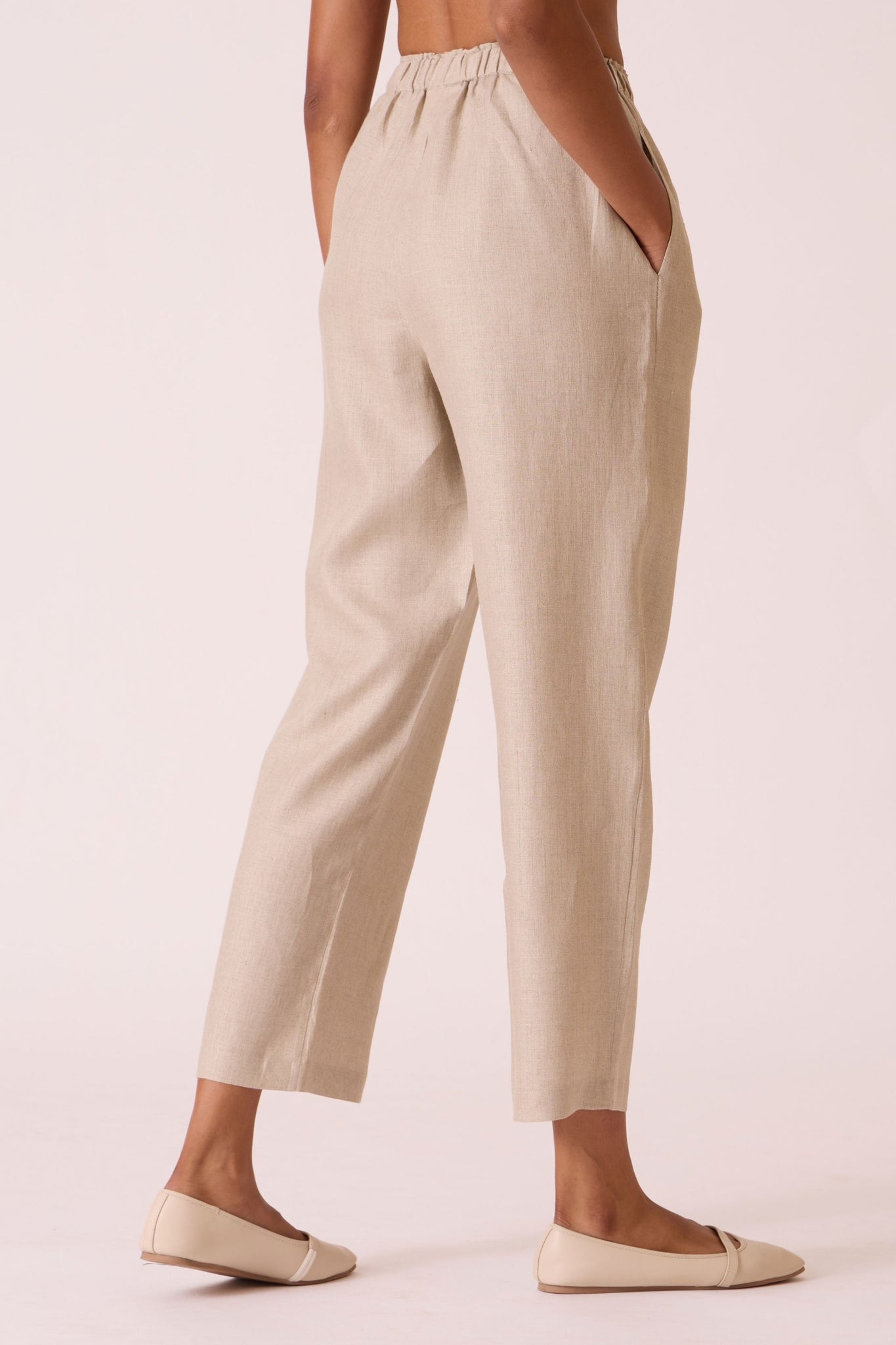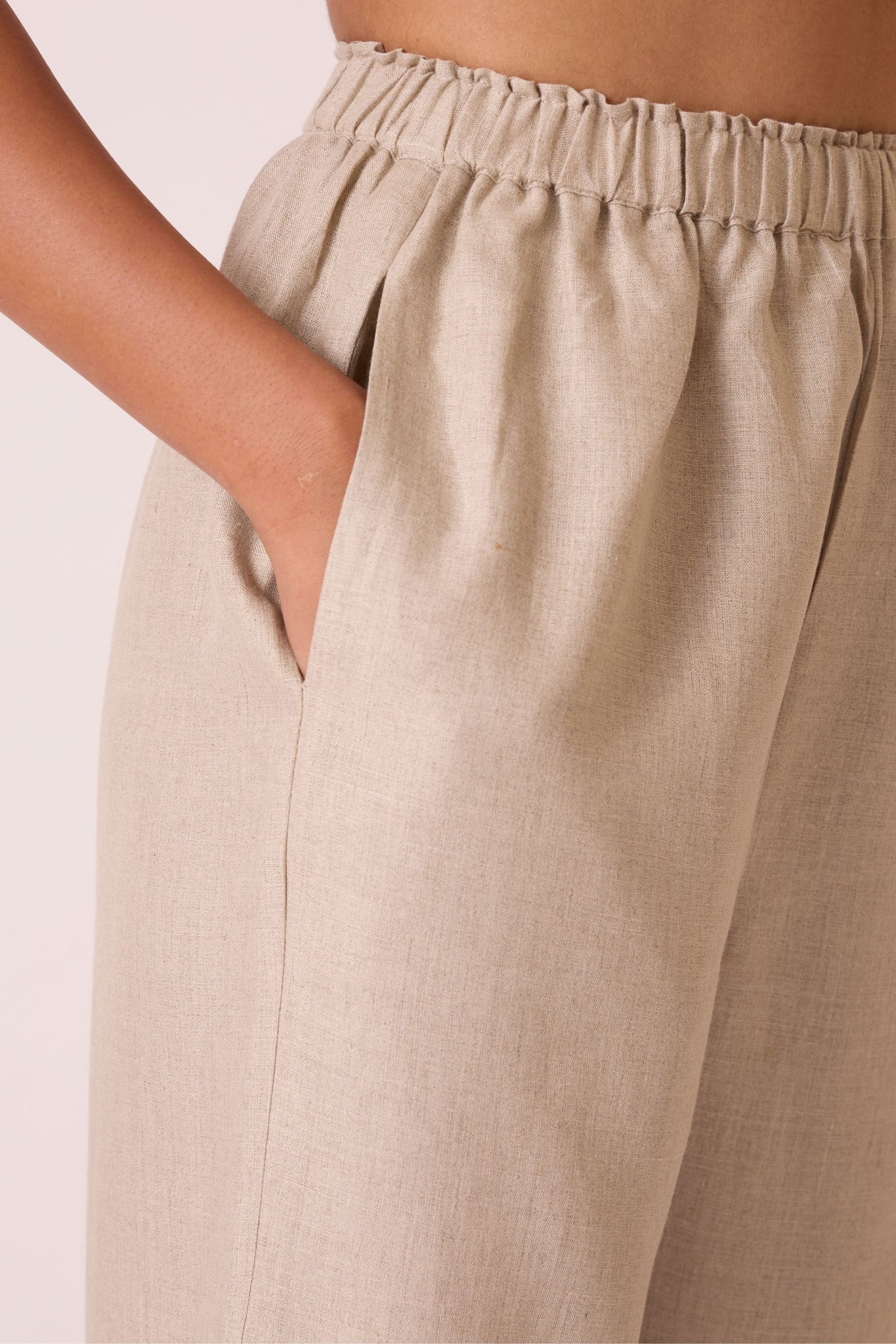 Straight-leg linen trousers with a lightweight, easy-going design and an elasticated waistband.