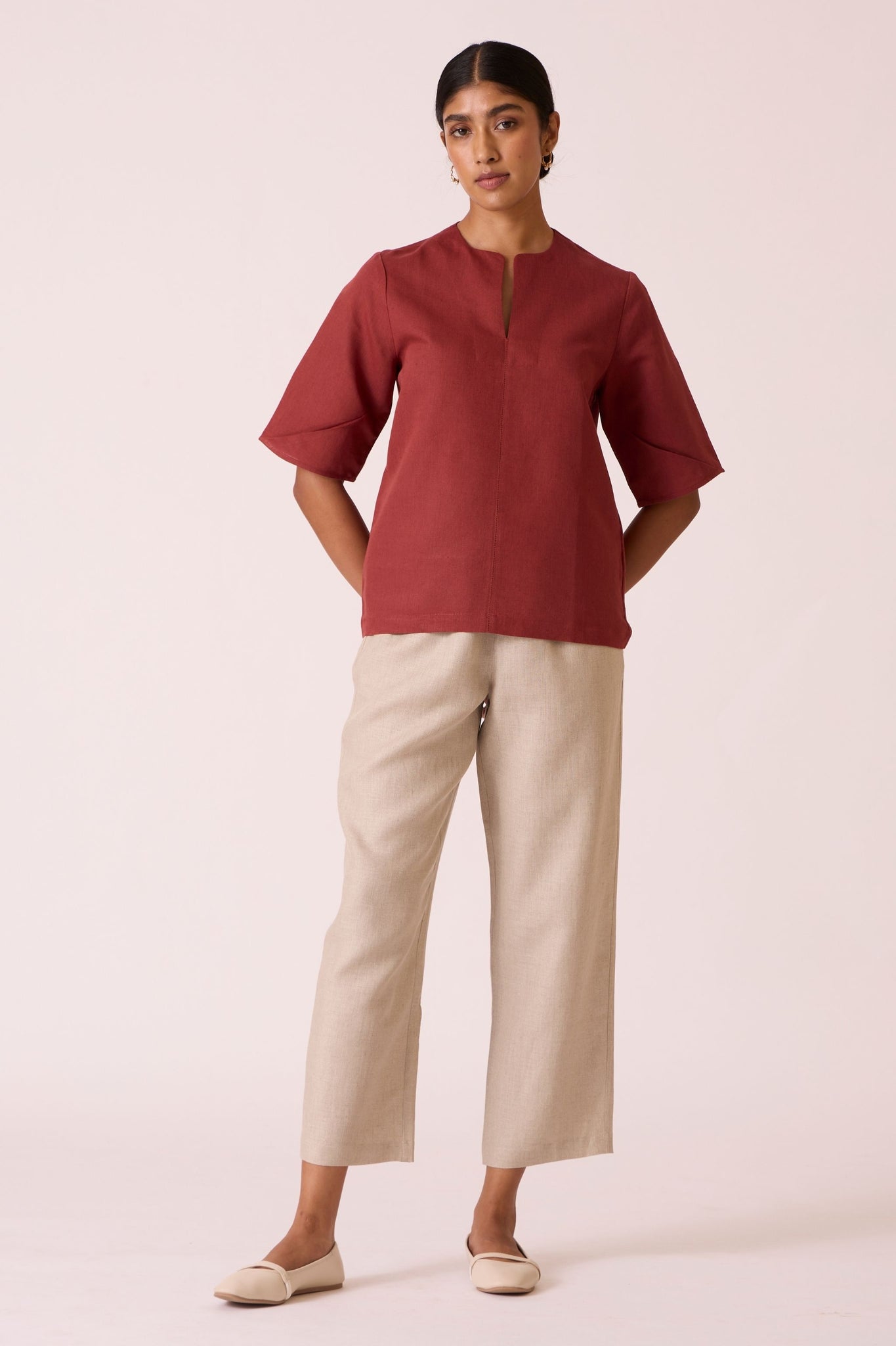 Torri Beige Linen Trousers