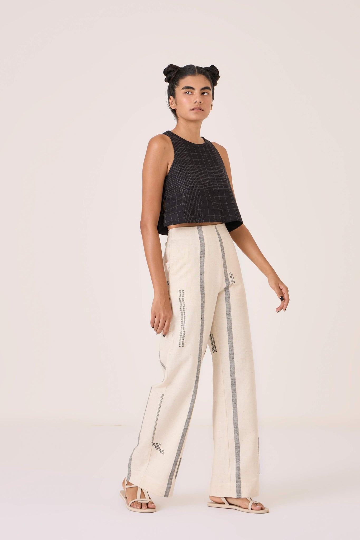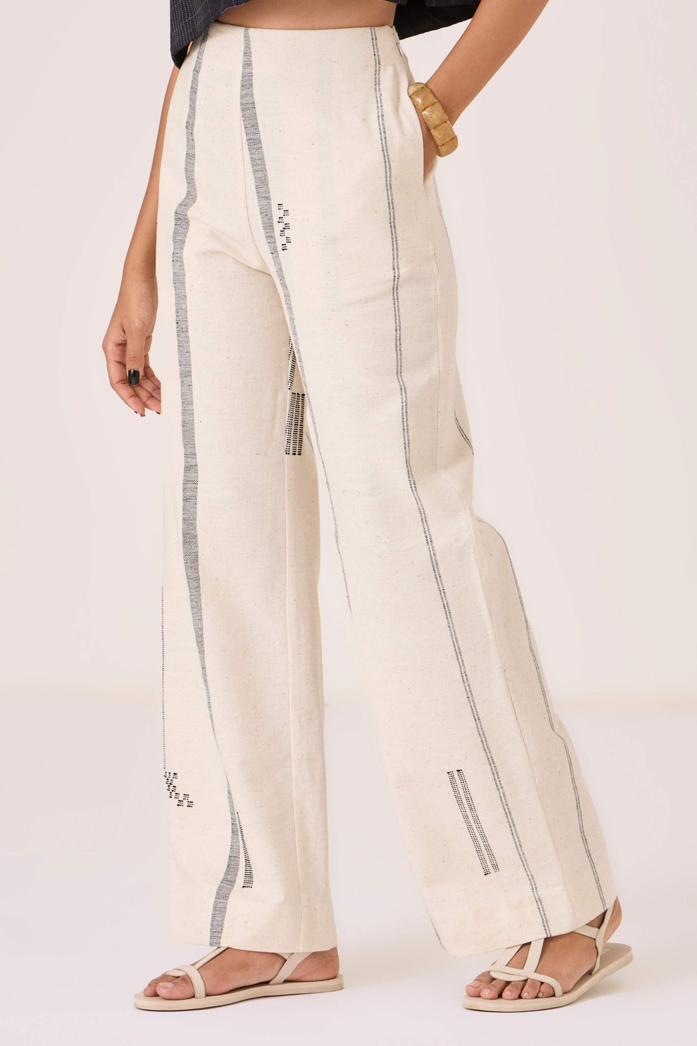 This signature weave has been developed in our studio and handwoven by artisans in Kutch. Slight irregularities are inherent and speak to the hand processes involved.