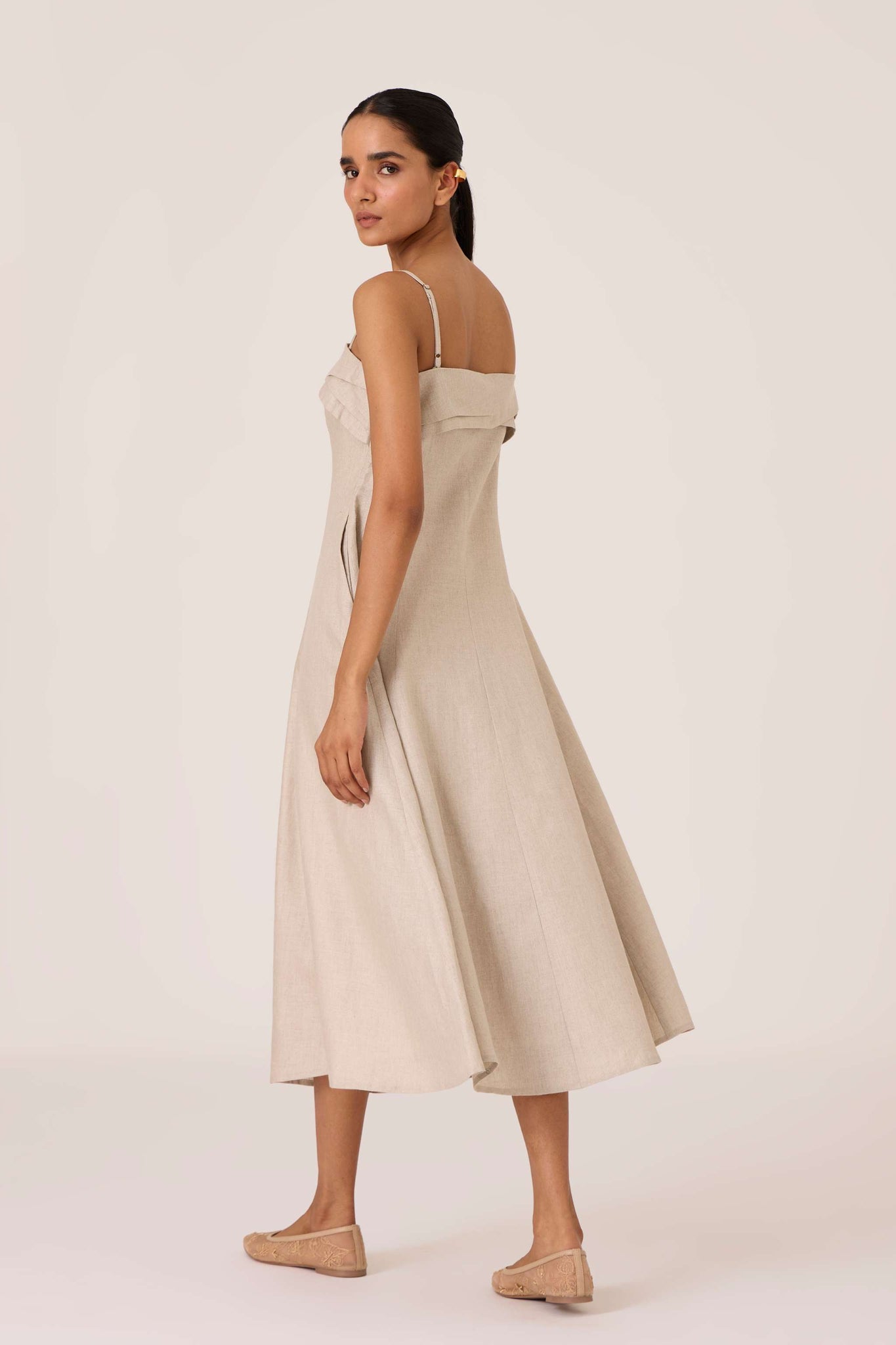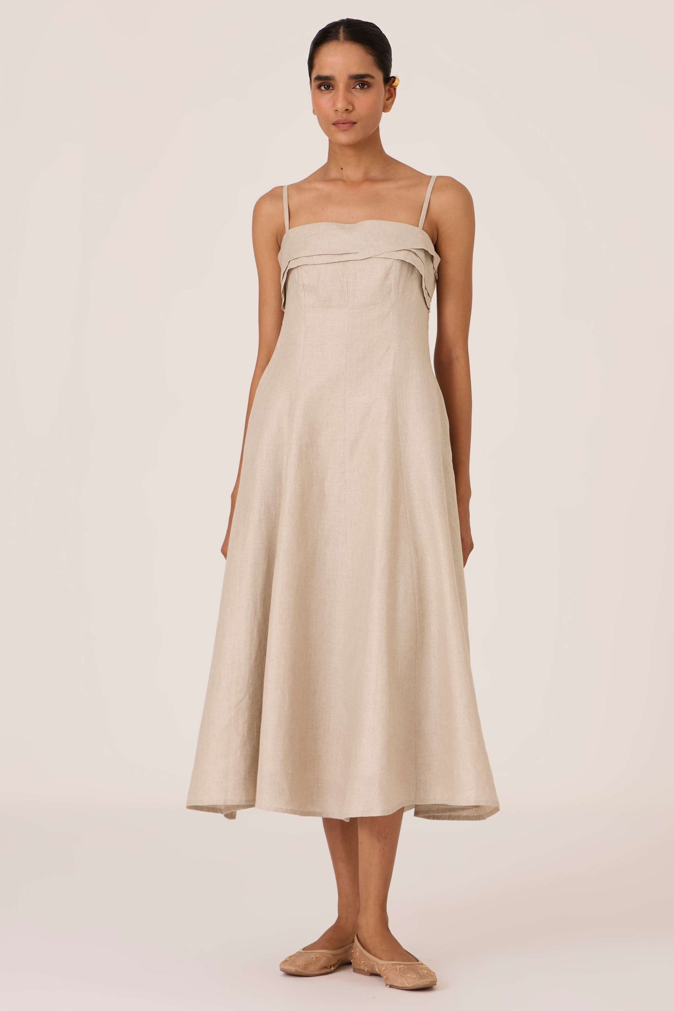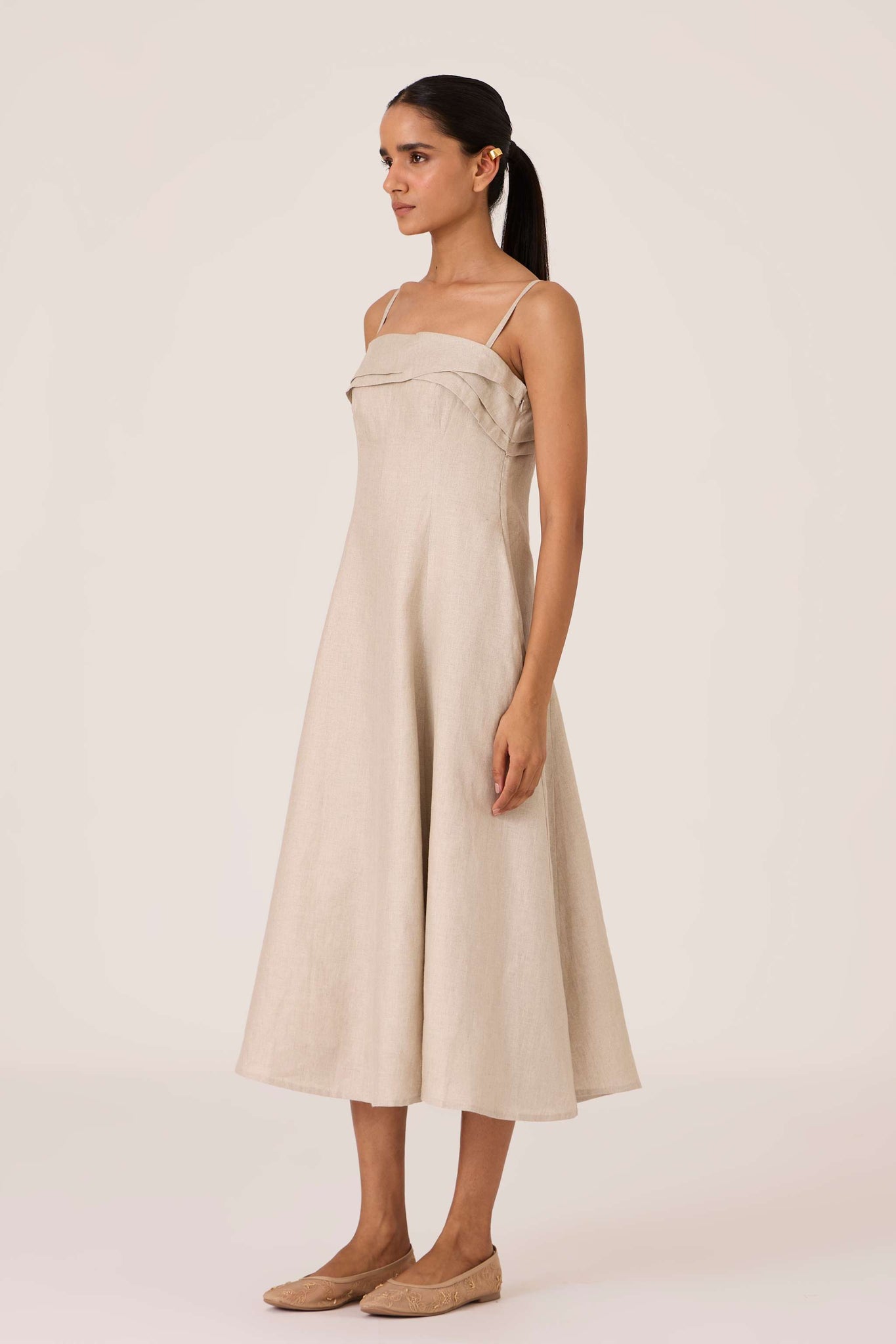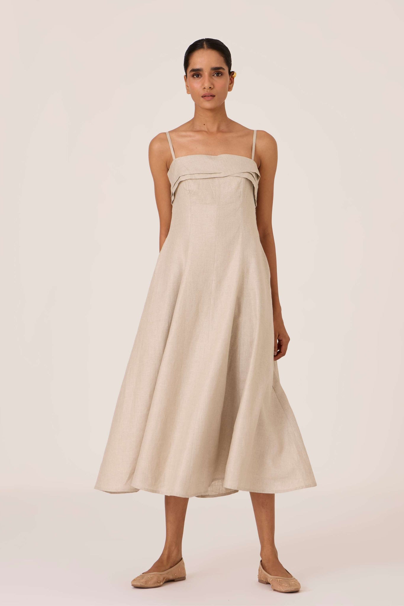 Classic summer linen dress. Flattering flow that gently shapes at the waist. Adjustable straps. Fully lined. In-seam pockets.