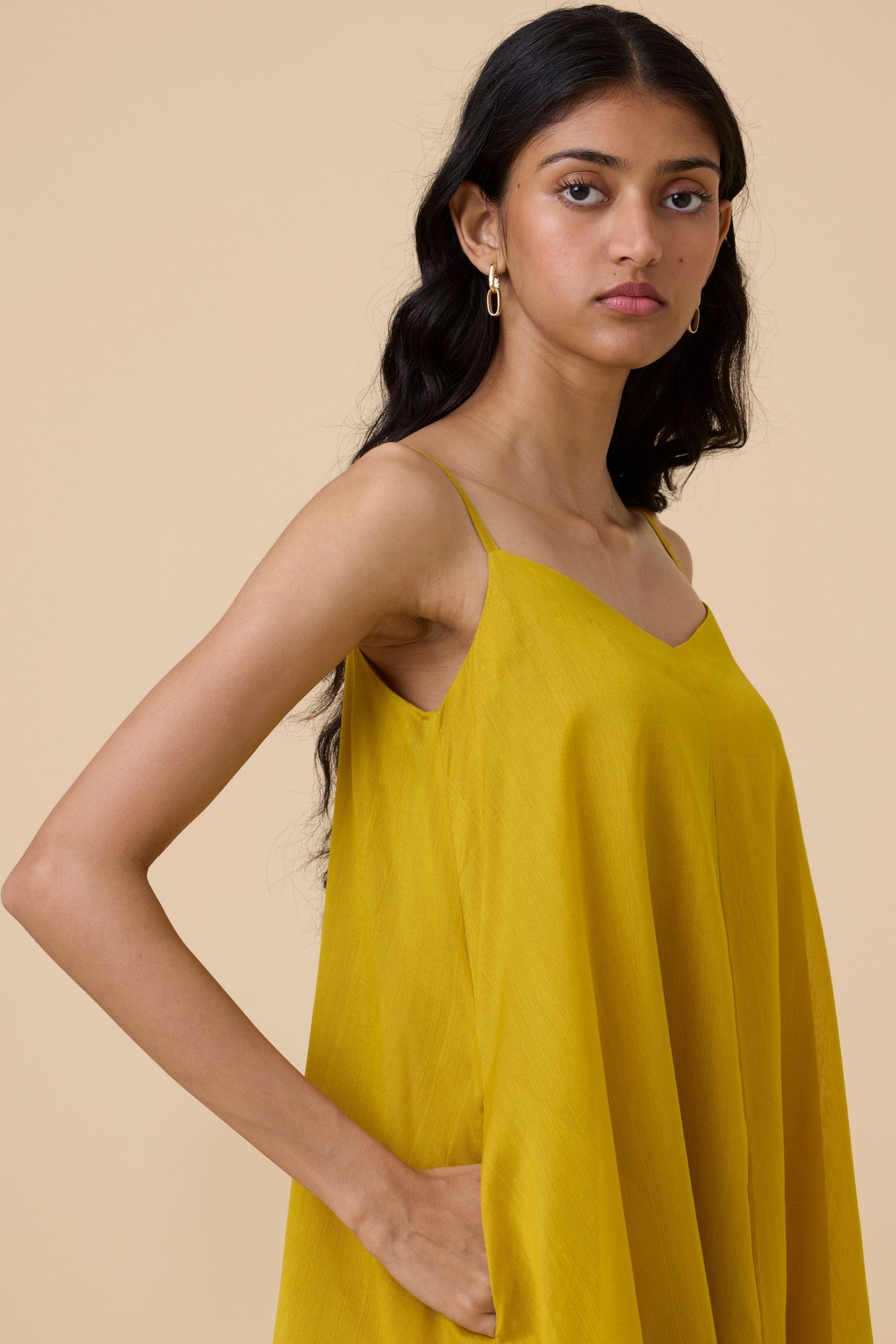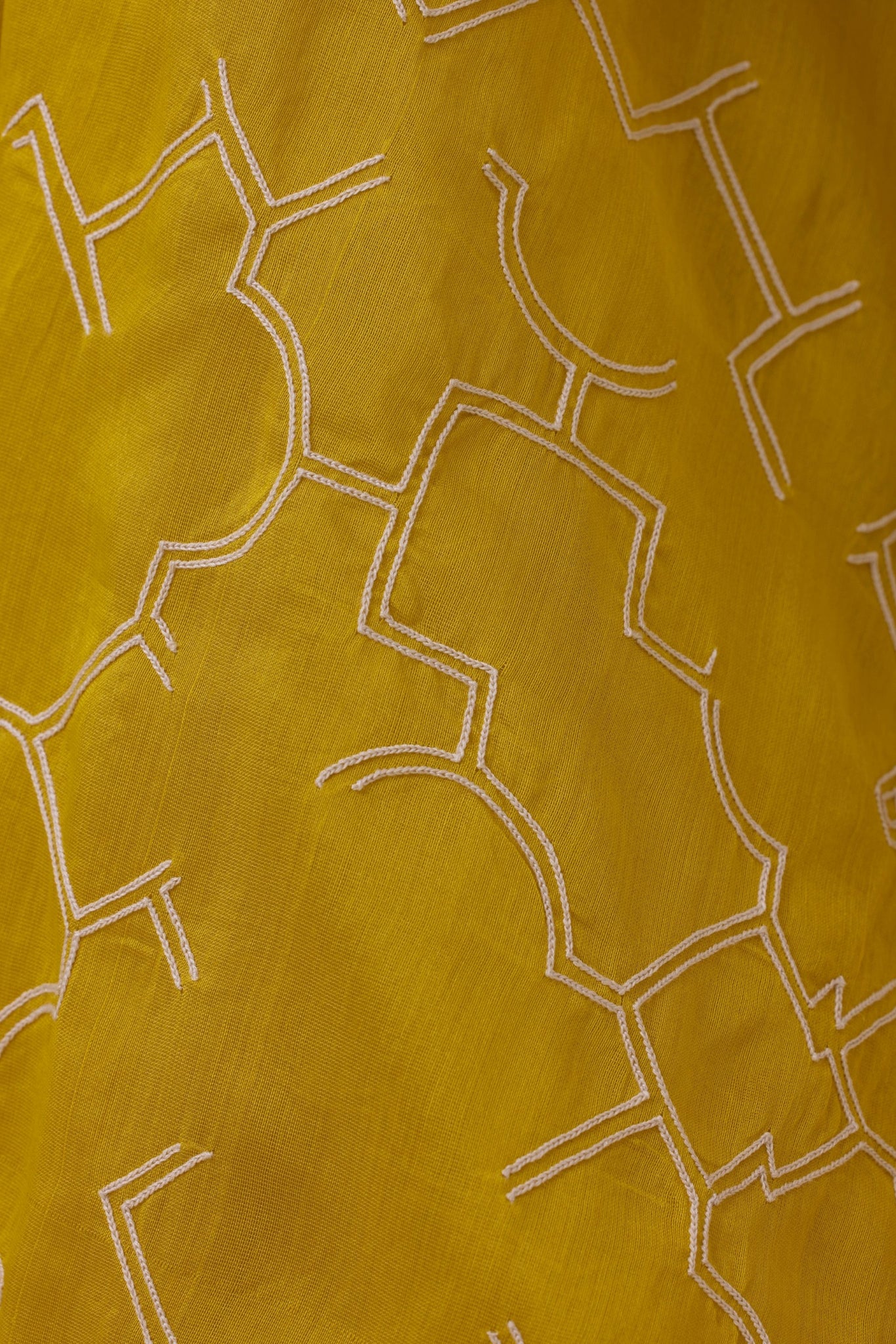 Hand embroidered maxi dress with handkerchief hem. Crafted from chanderi. Adjustable straps. In-seam pockets. This dress is fully lined.