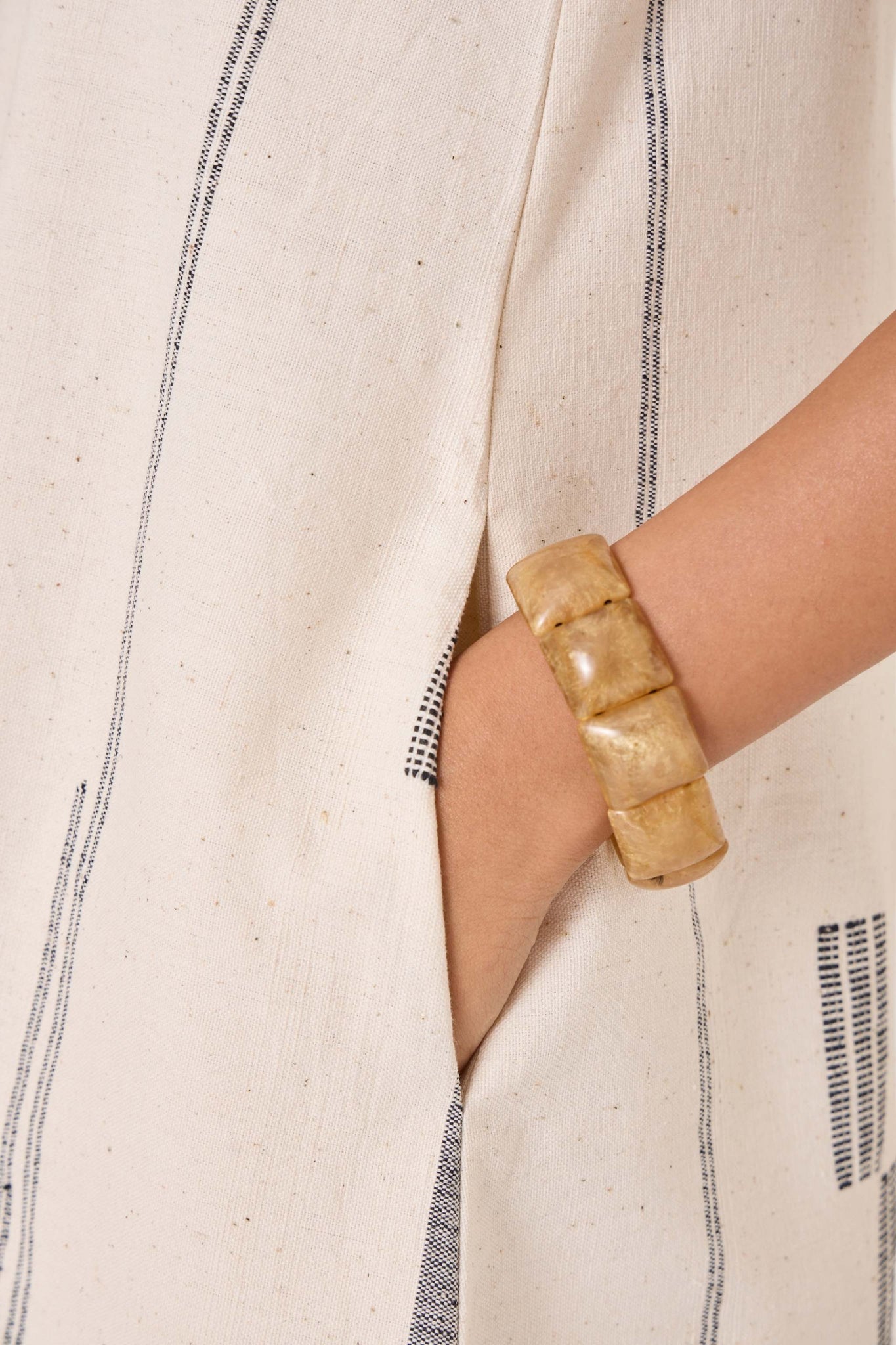 This signature weave has been developed in our studio and handwoven by artisans in Kutch. Slight irregularities are inherent and speak to the hand processes involved.