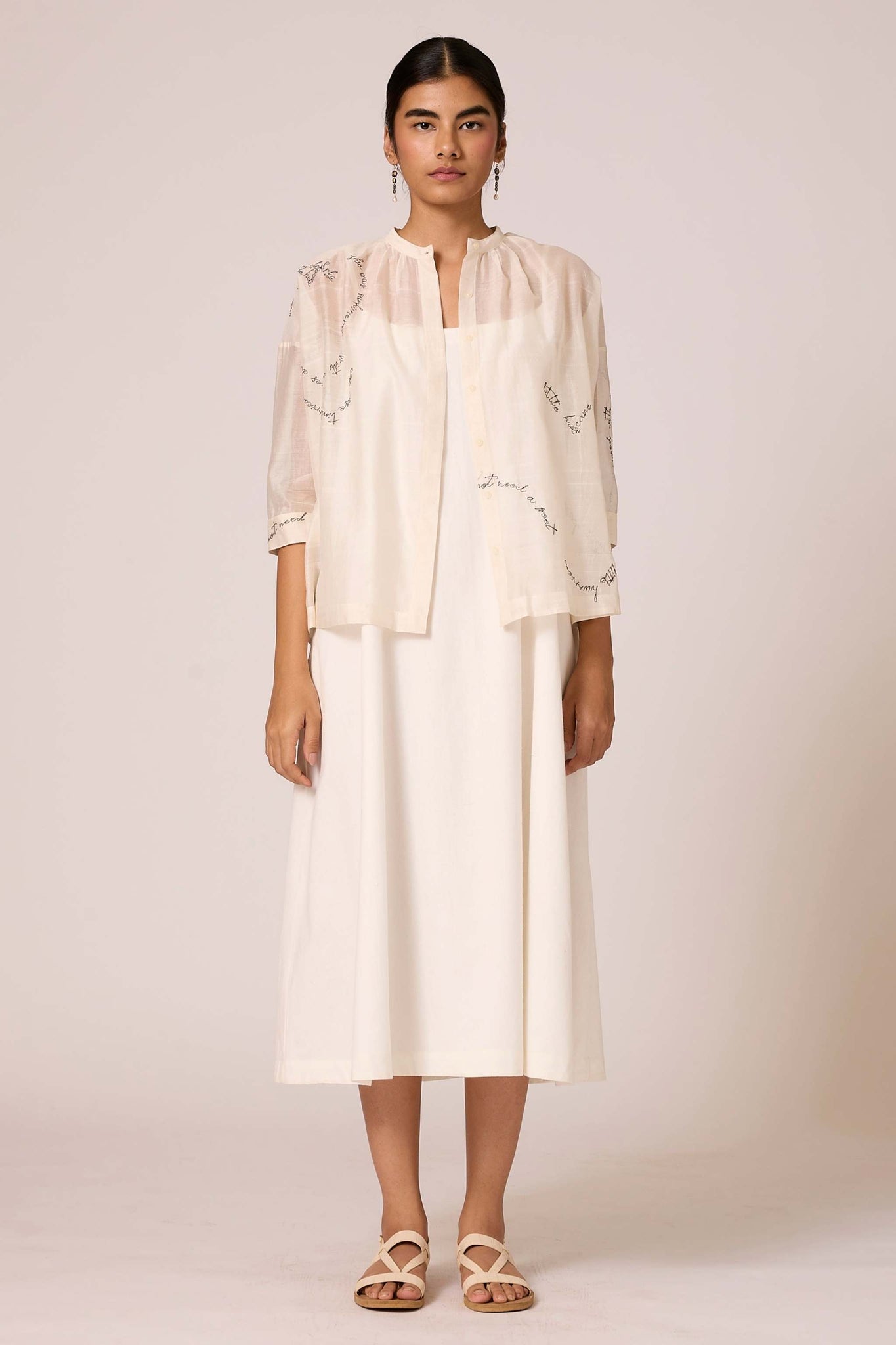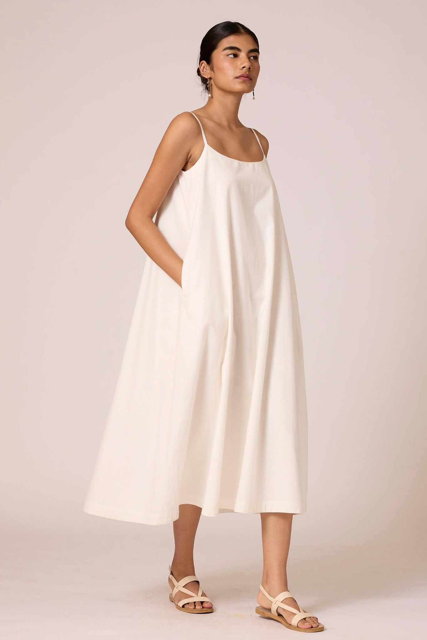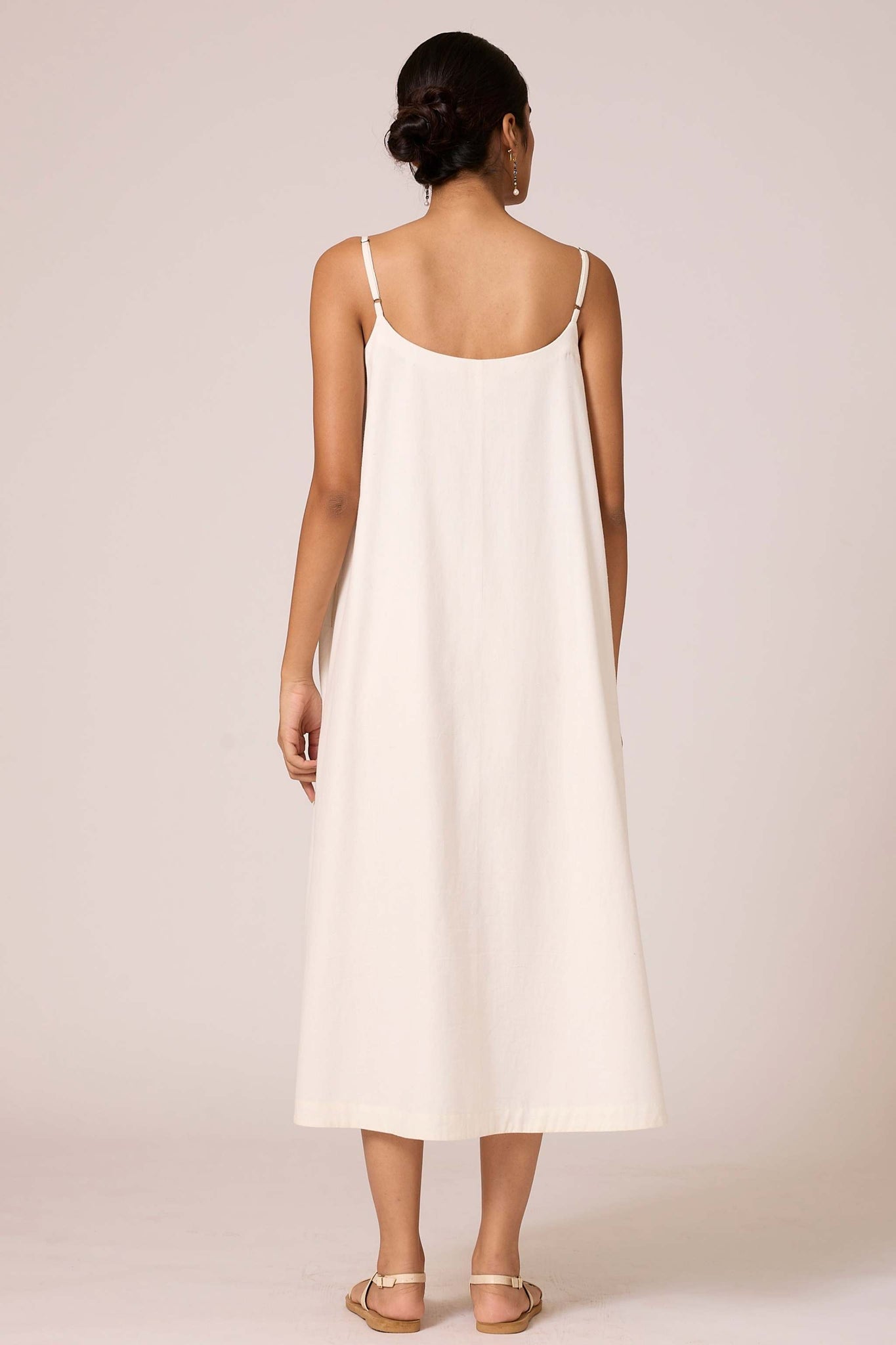 A slip dress in handspun and handwoven cotton. Featuring a wide neckline, adjustable straps and inseam pockets.