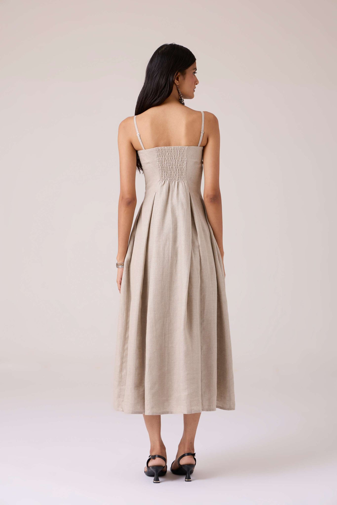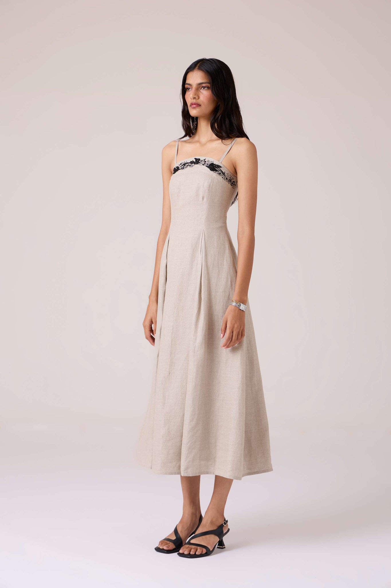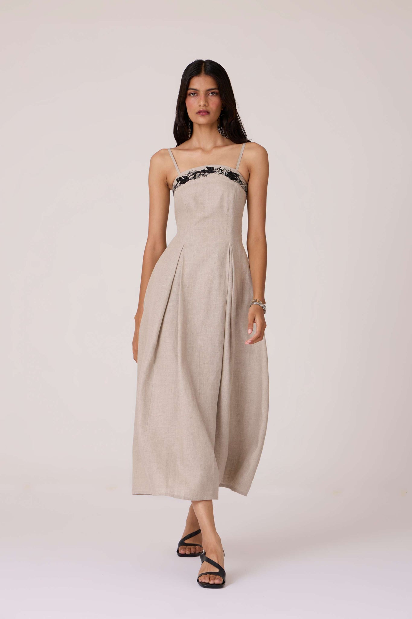 Sculpted yet easy. A tube dress marked by an embroidered neckline, smocked back, and detachable straps - balancing structure with freedom.