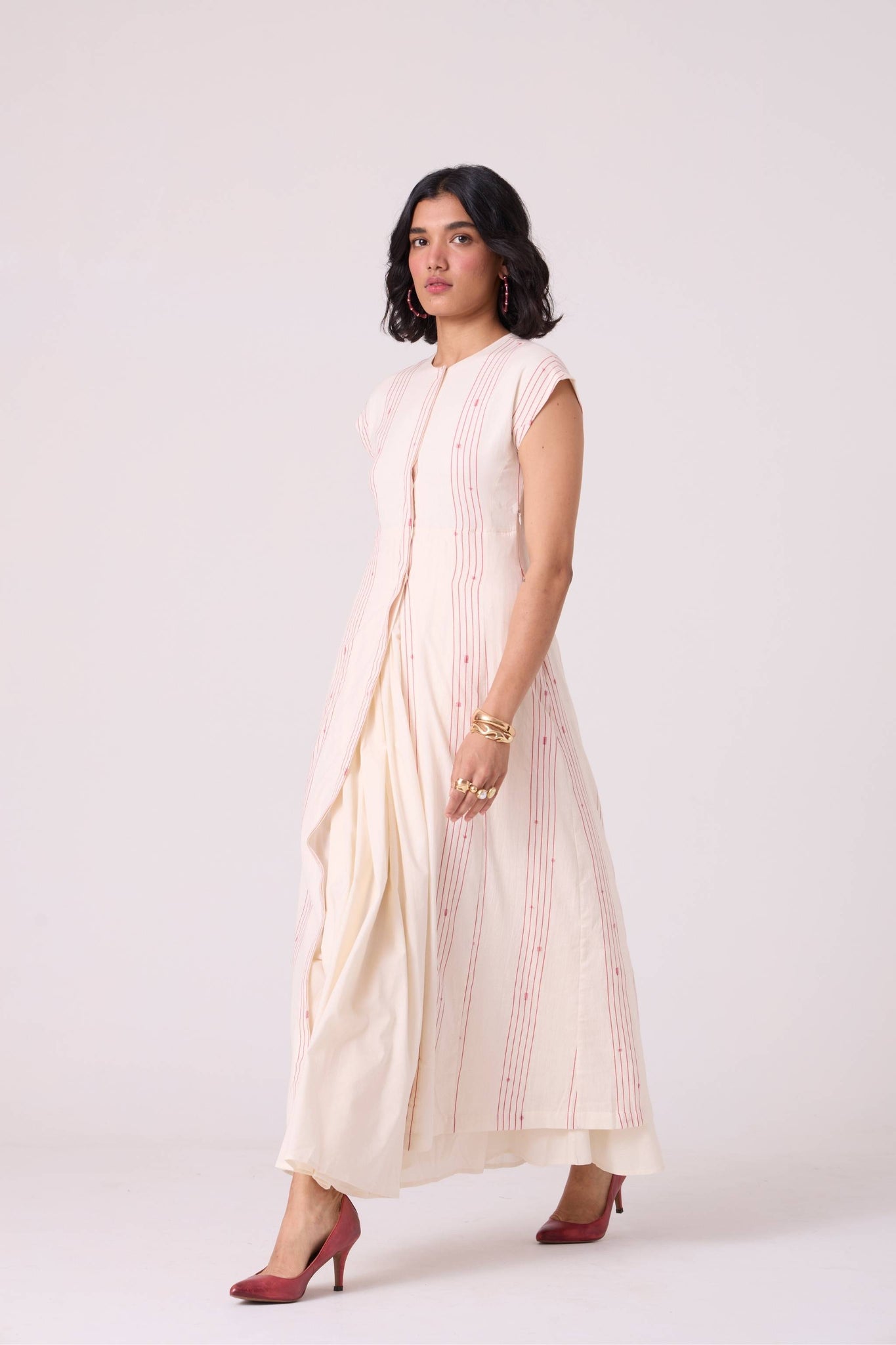 - Button-down front in handwoven Jamdhani