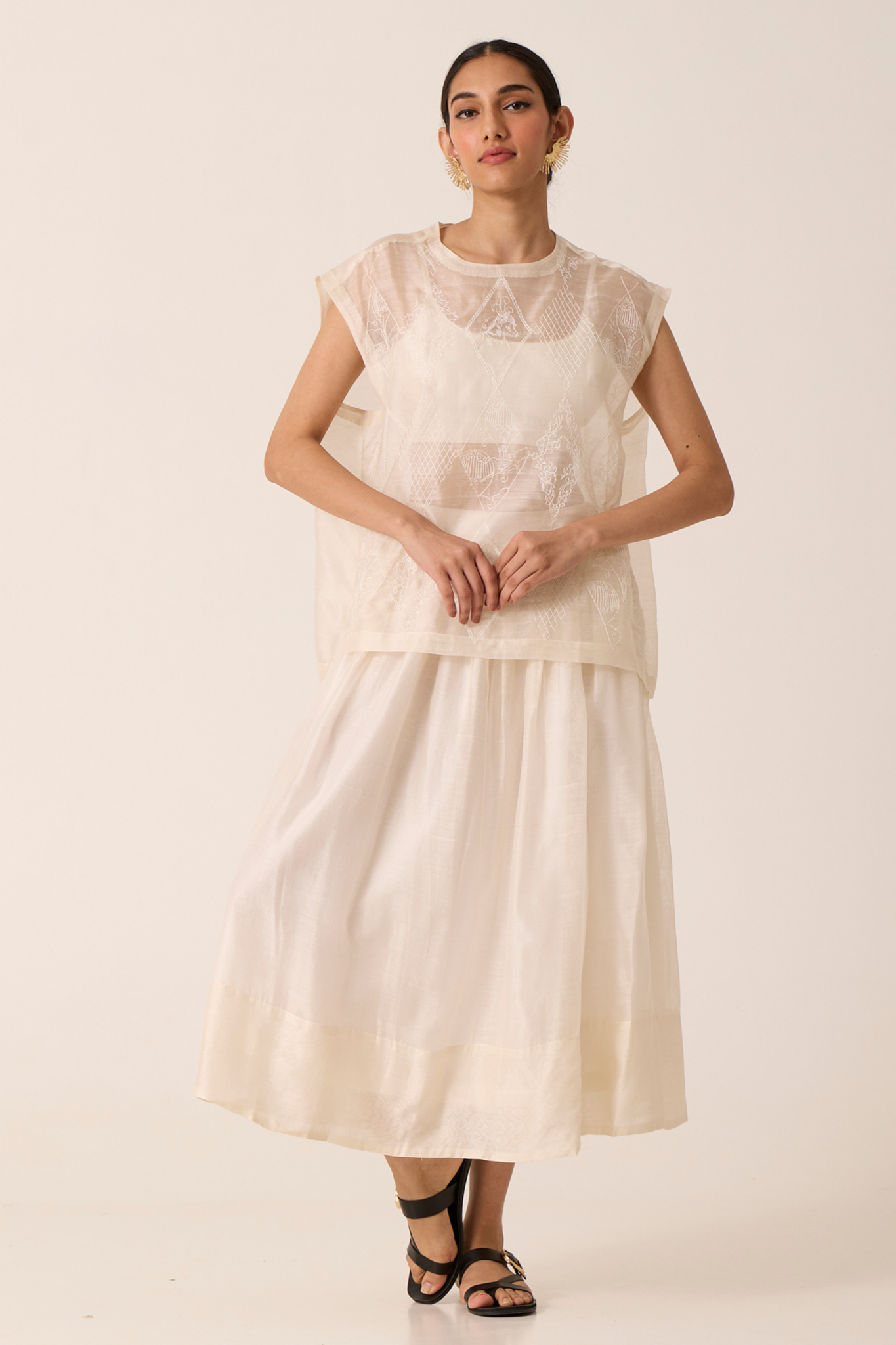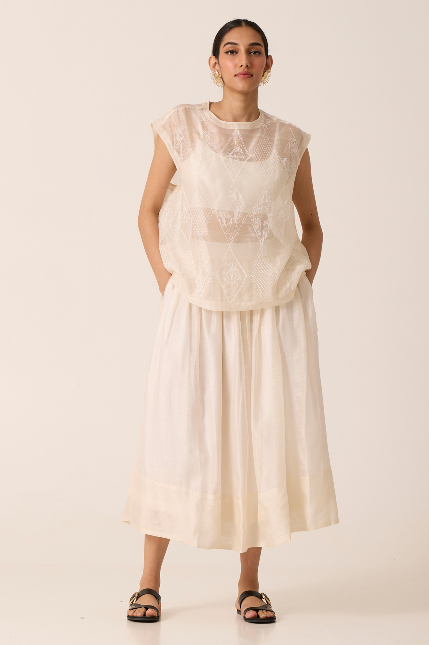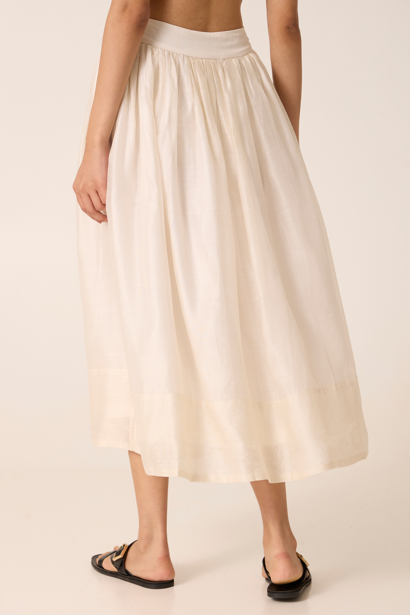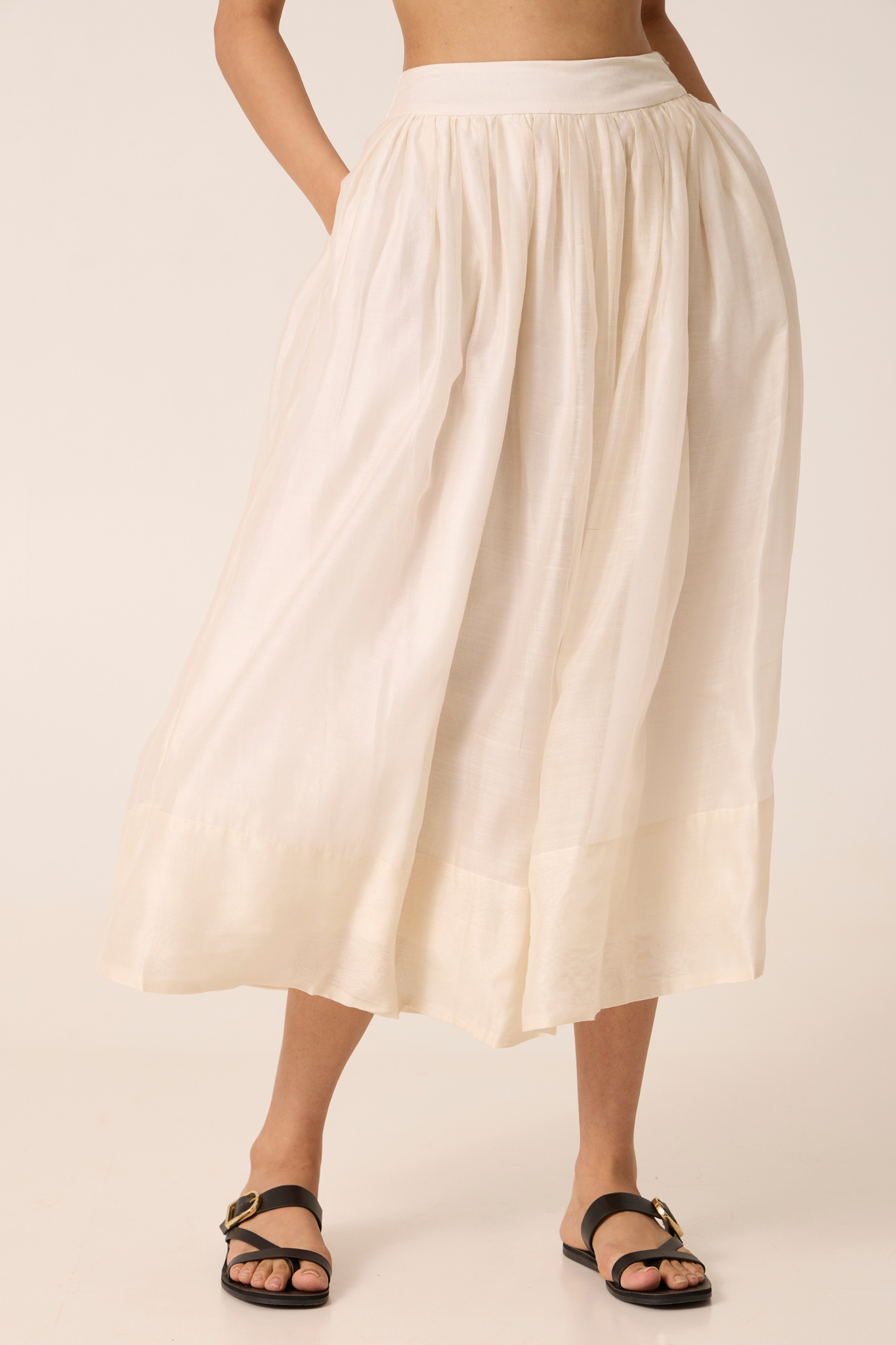 An elegant skirt with slight gathers around the waist line. In-seam pockets. Side zip fastening. This skirt is fully lined.