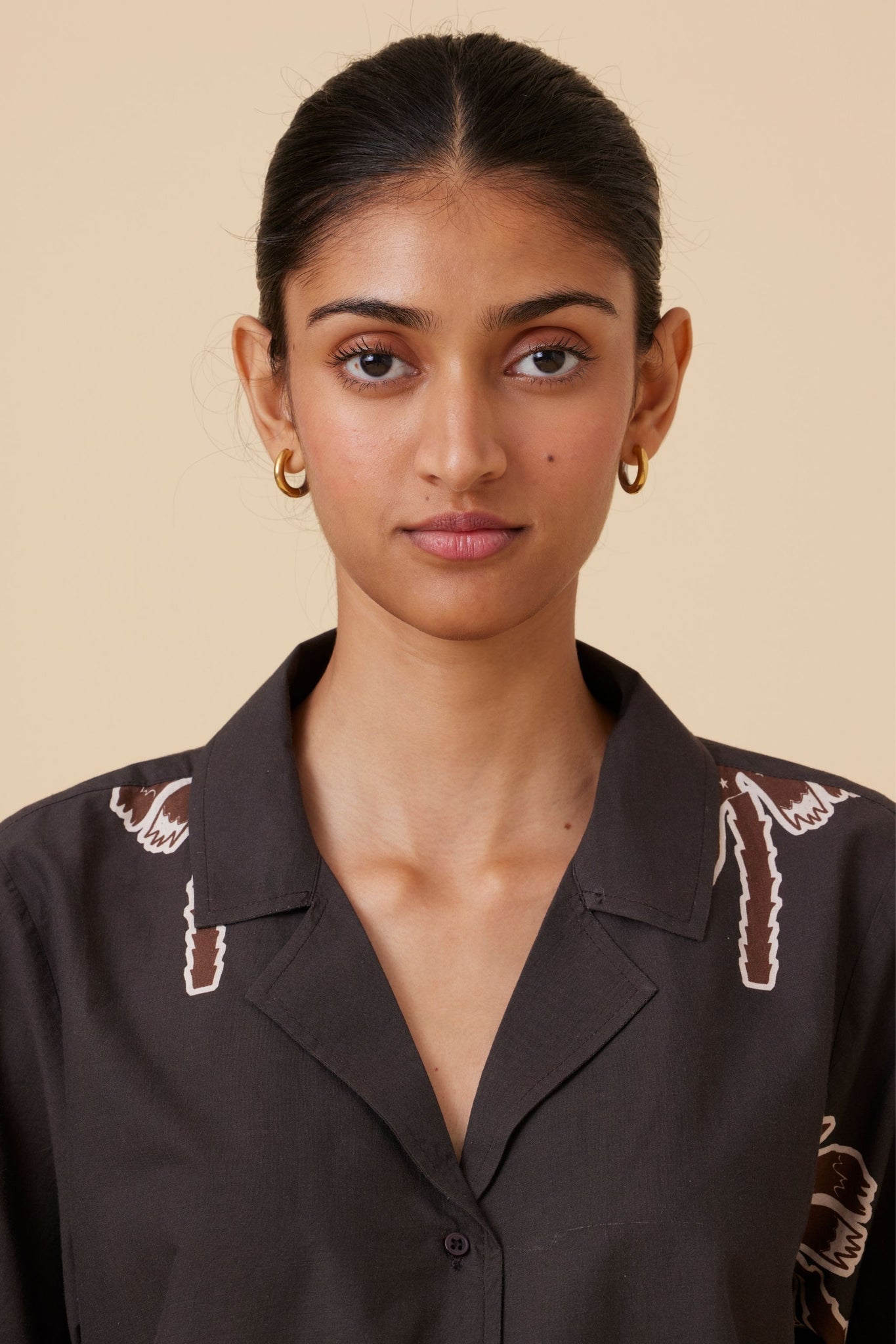 Notch collar shirt made in organic cotton. Short sleeve. Back yoke. Crafted in soft cotton featuring a signature print developed in-studio.