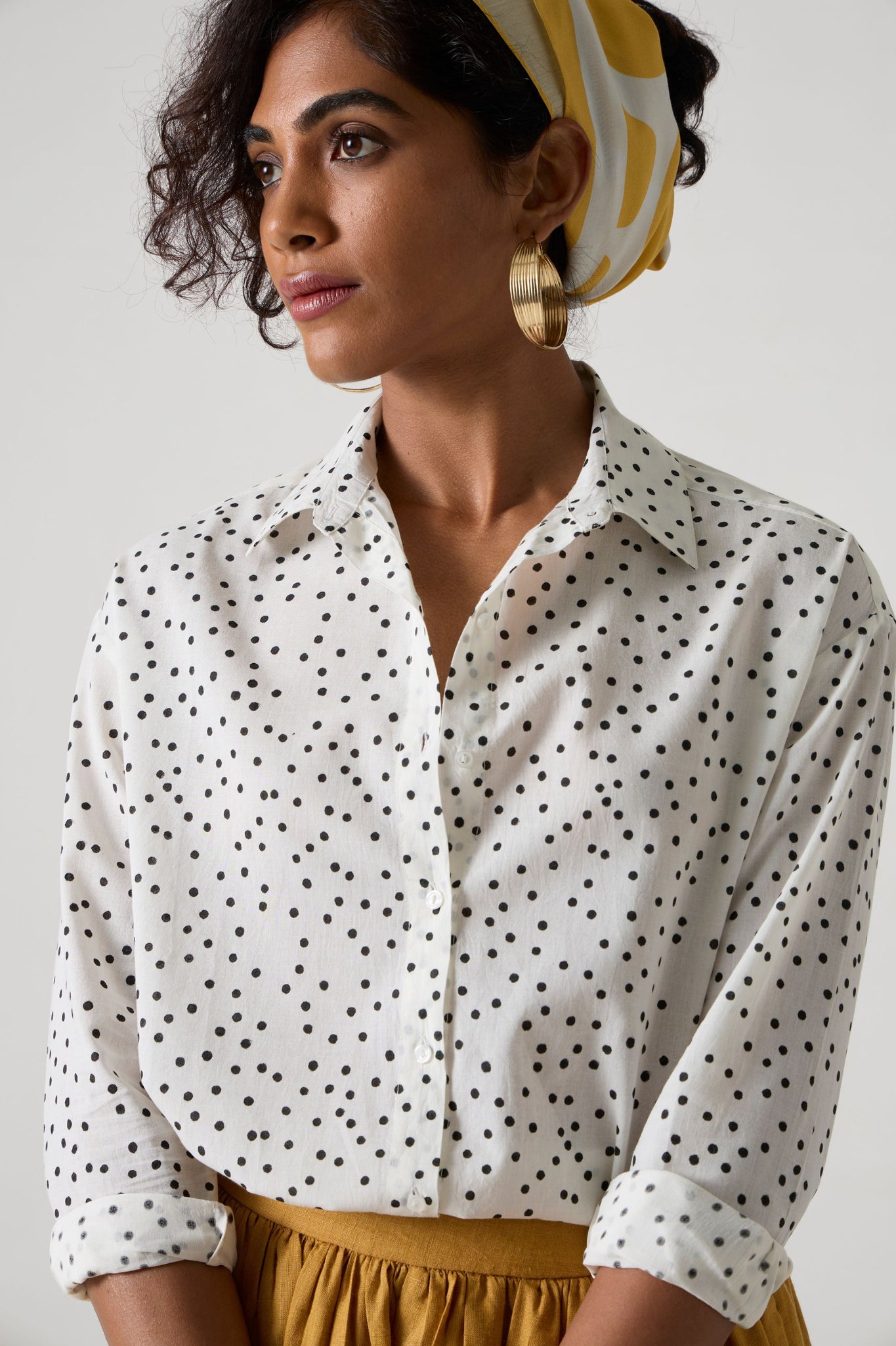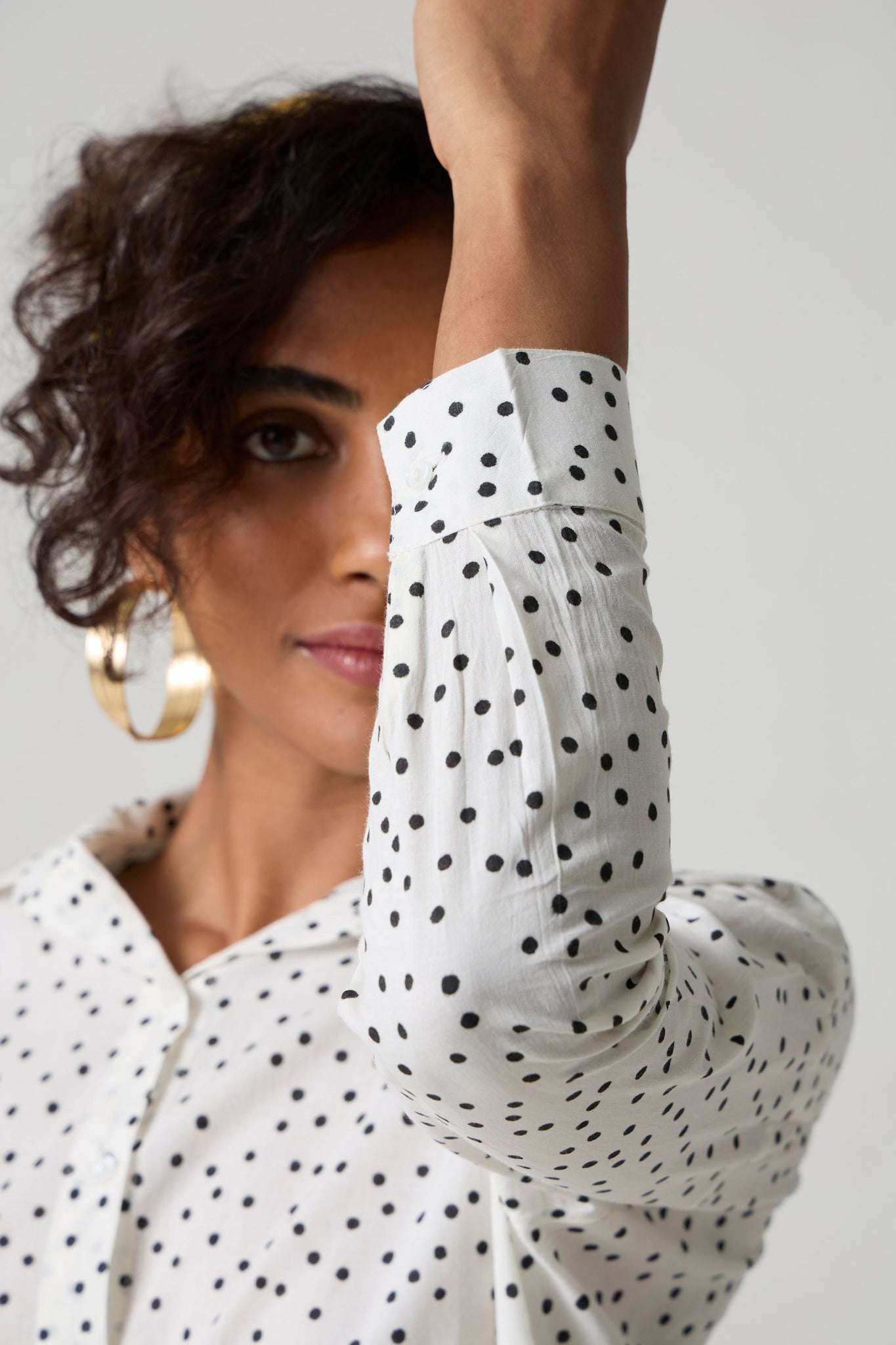 Made from soft plush cotton. Oversized, button down shirt featuring a slim collar. Full length sleeves with cuff.