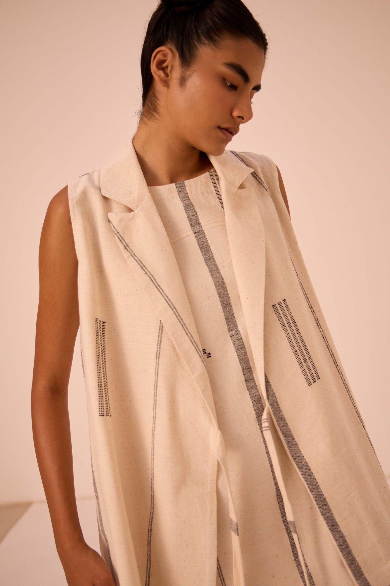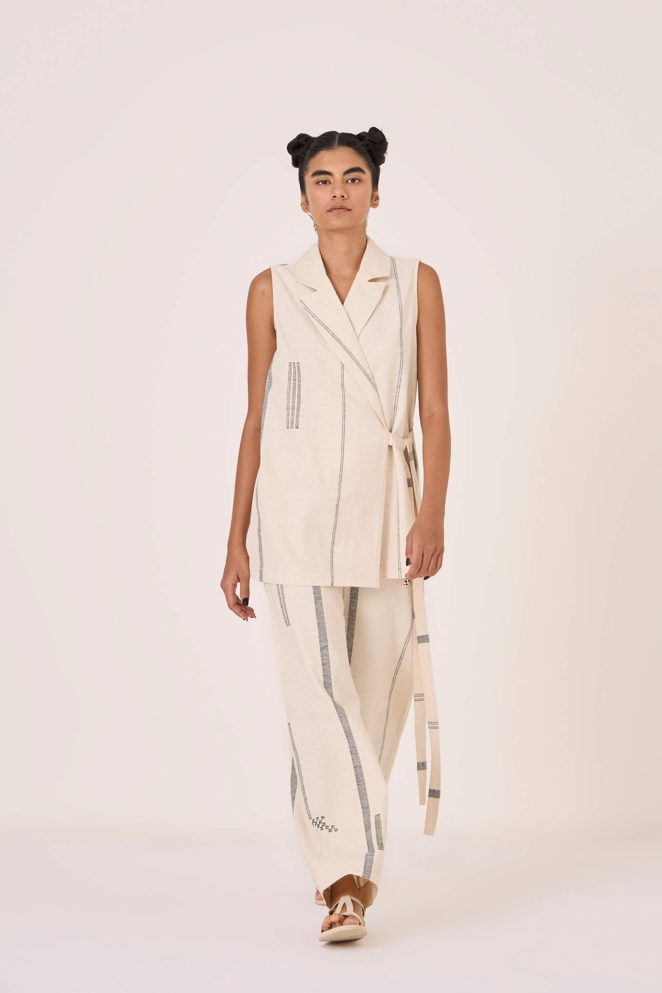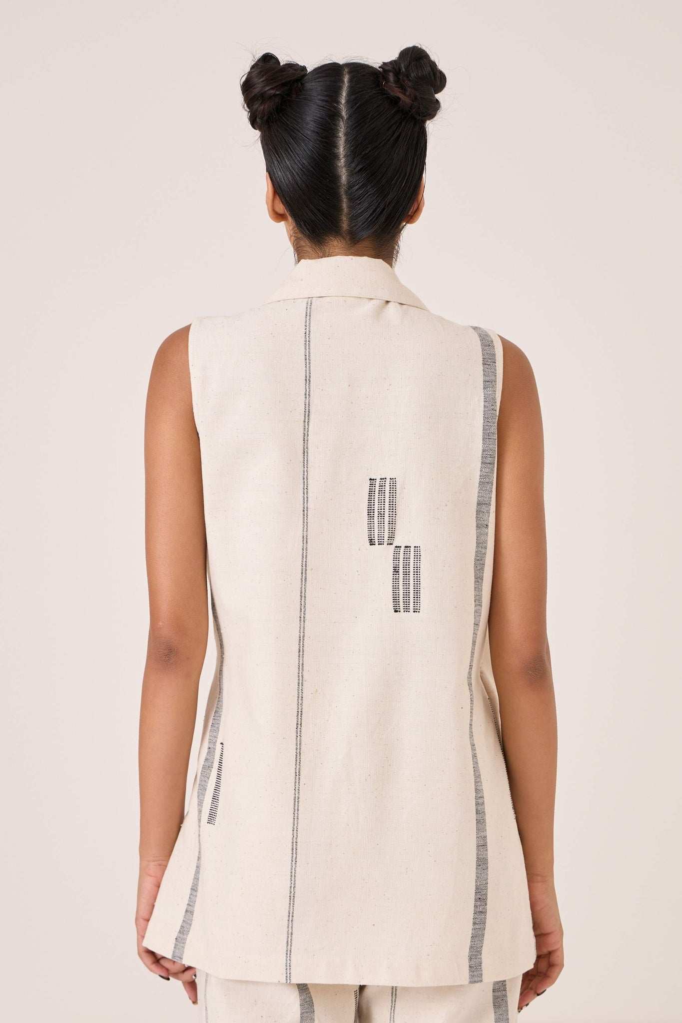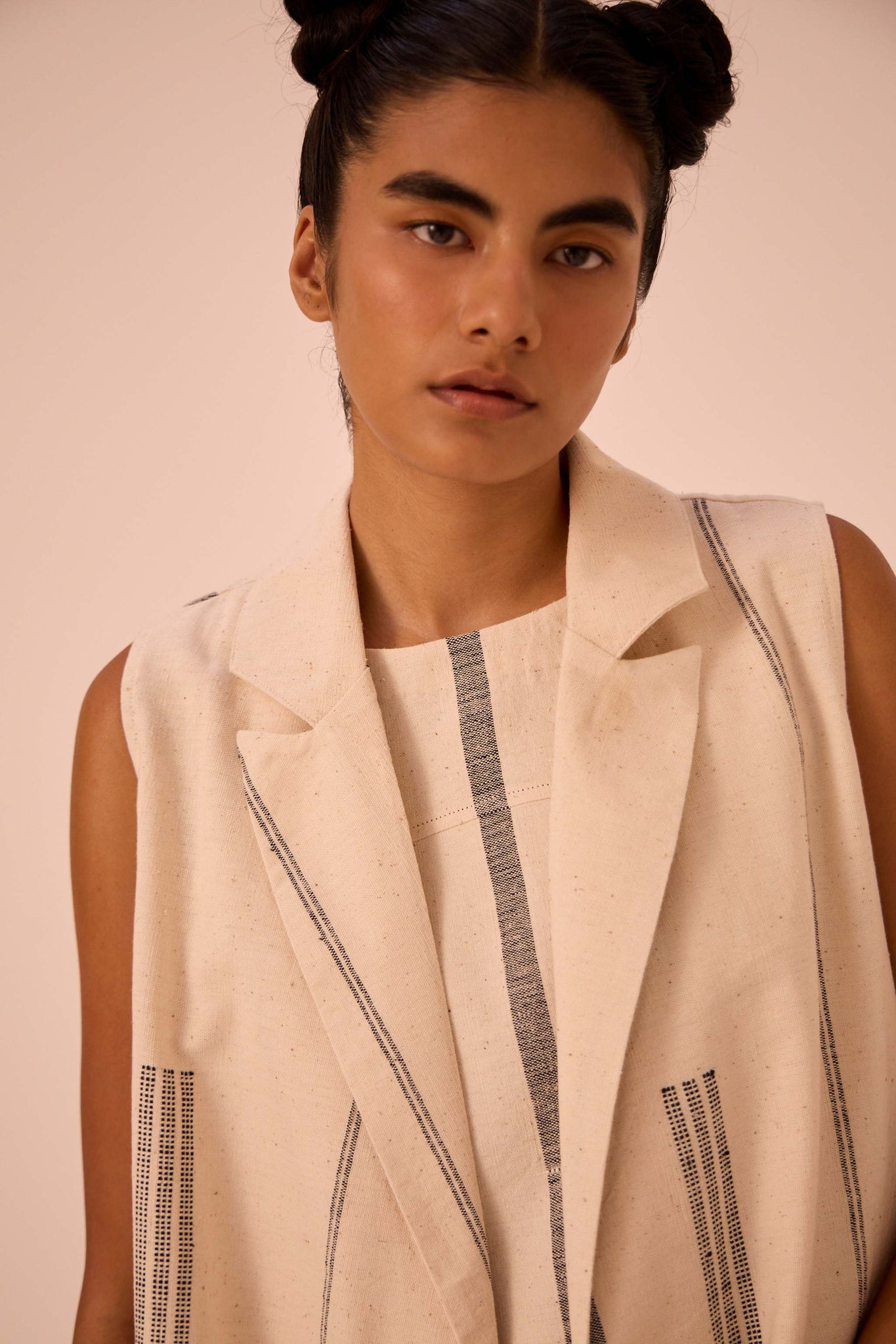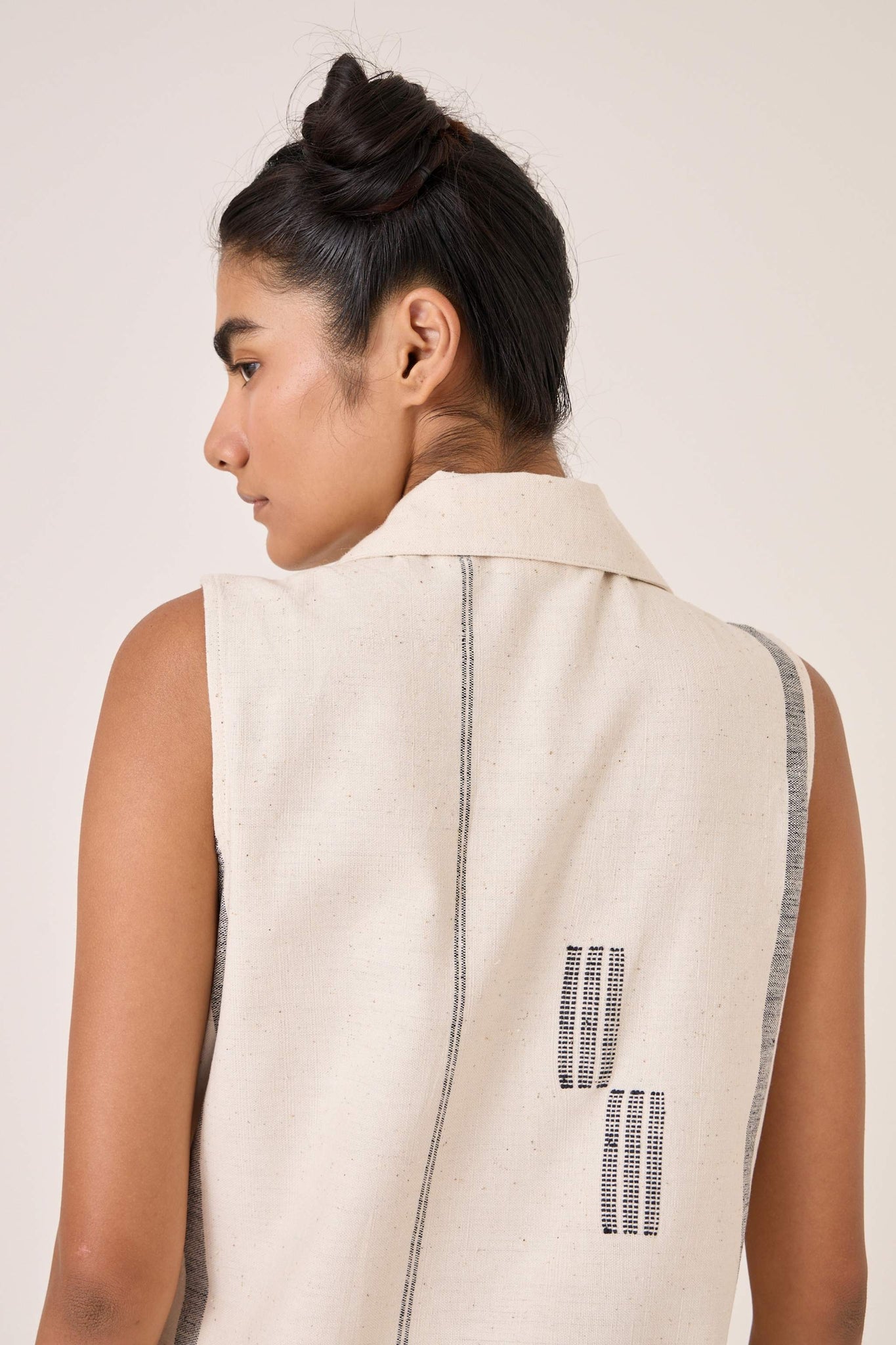 This signature weave has been developed in our studio and handwoven by artisans in Kutch. Slight irregularities are inherent and speak to the hand processes involved.