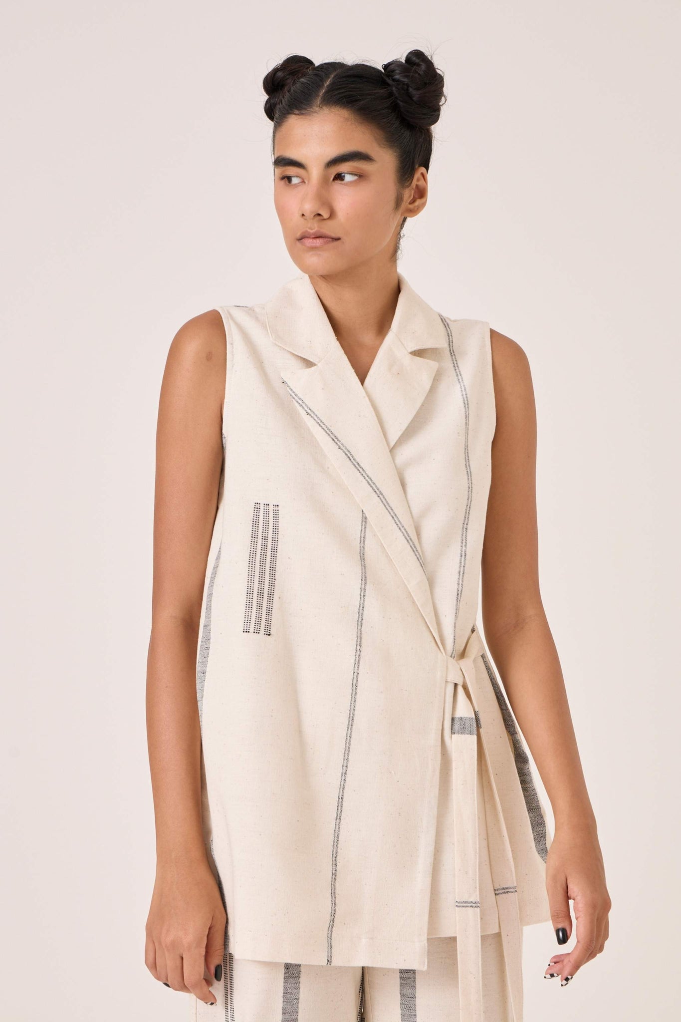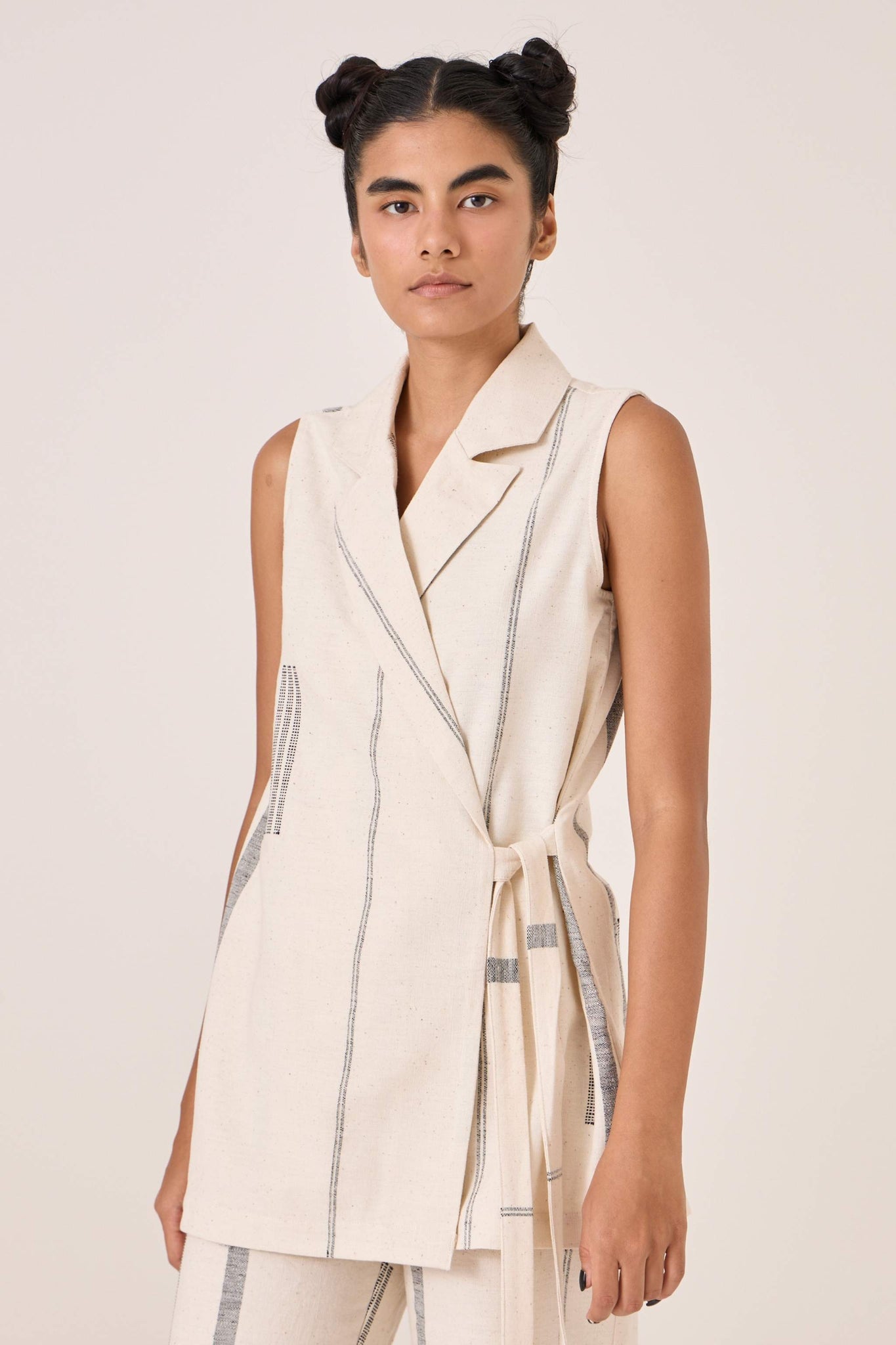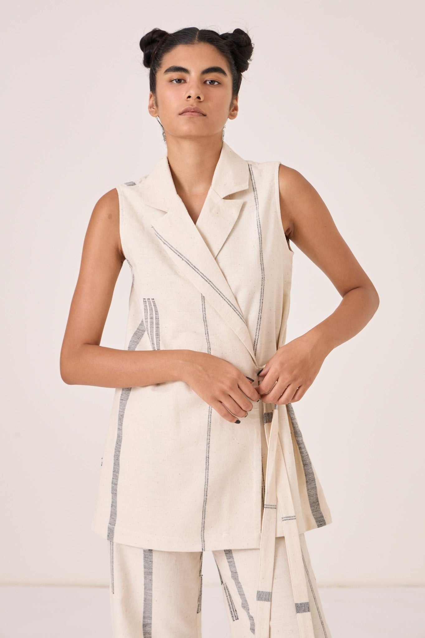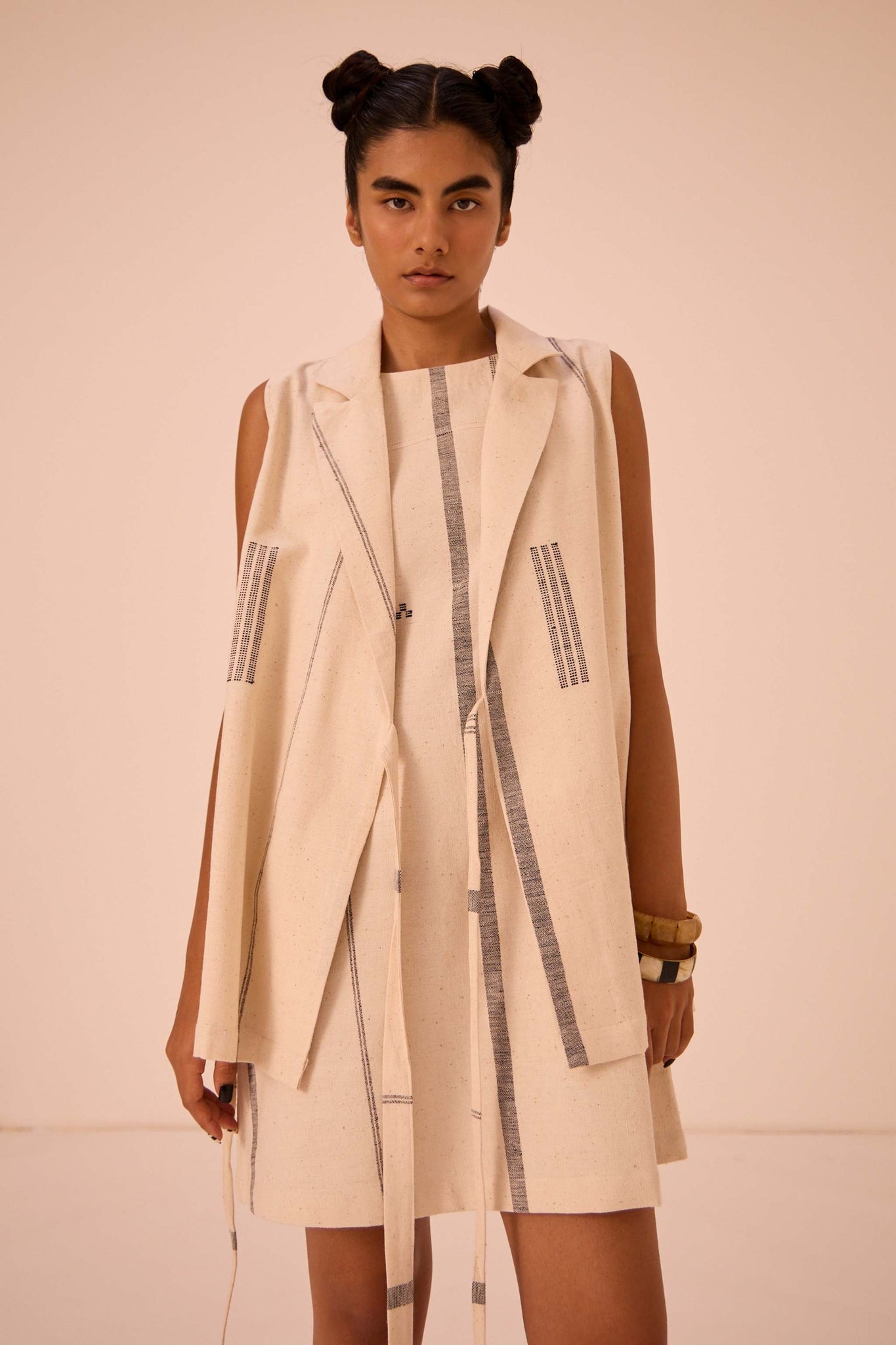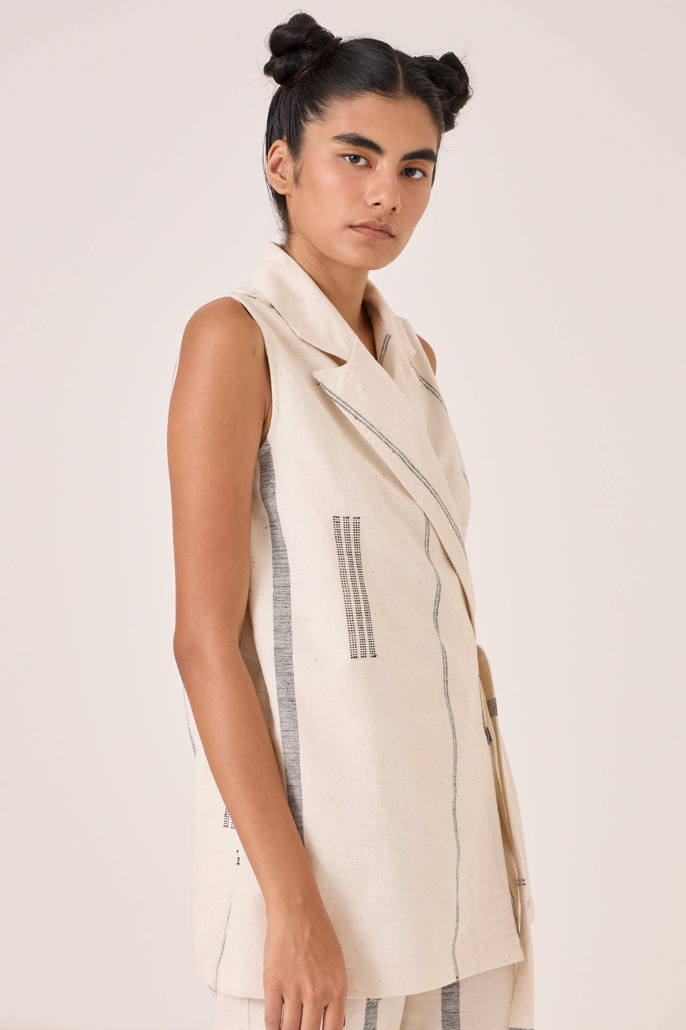 This signature weave has been developed in our studio and handwoven by artisans in Kutch. Slight irregularities are inherent and speak to the hand processes involved.