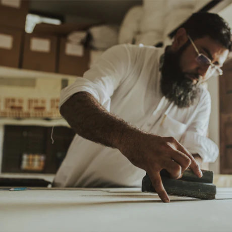 When the devastating earthquake of 2001 shook not just the earth of Kutch but the very foundation of life, one village decided this will not be their destiny. They moved to a new land; indigo, mineral and herbs used to blend colours in tow. They named their new village Ajrakhpur, after the craft they had inherited from their forefathers. Within ten years, they became one of the most celebrated block printing communities in the world. Ajrakh block printing is not just a craft style. It is a testimony of human skill and grit. The Summer House works extensively with Ajrakh craftsmen to create signature prints for our studio.