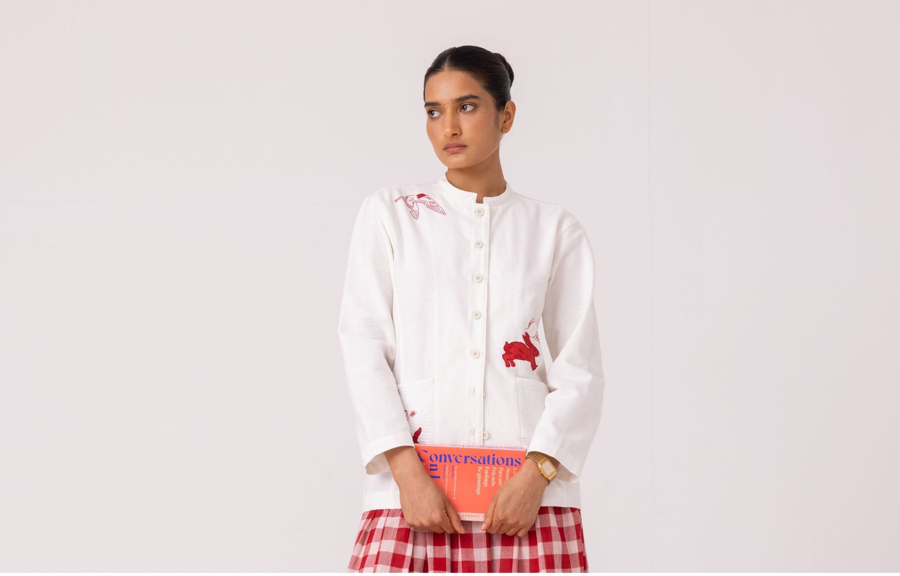 A little intrigue, a little rebellion, a sharper eye. The ones whose journey started as a witness to the story, but soon became its most interesting character. This edit is evocative, but leans back on solid foundations of time honoured textile, sustainability and human skill. Herringbone denim woven by hand, embroidery inspired by literature classics, new age experimental fibres, comforting organic cotton. For women who carry style, and substance.