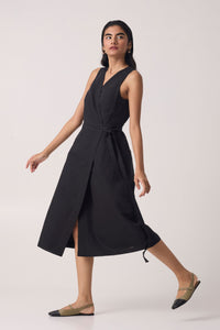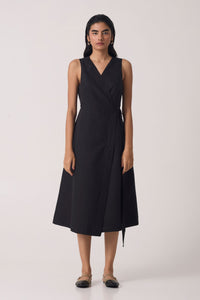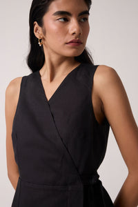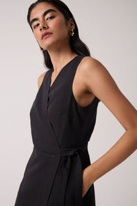 A smart sleeveless wrap dress to save the day, any day. A self-tie at the waist for adjustable fit. In-seam pockets. Fully lined.