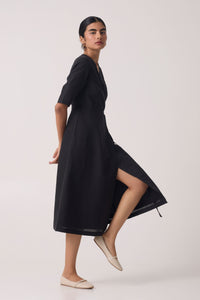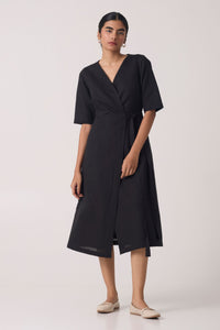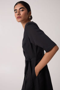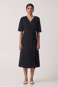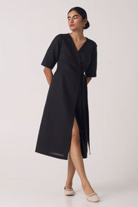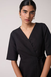 A smart wrap dress to save the day, any day. A self-tie at the waist for adjustable fit. In-seam pockets. Fully lined.