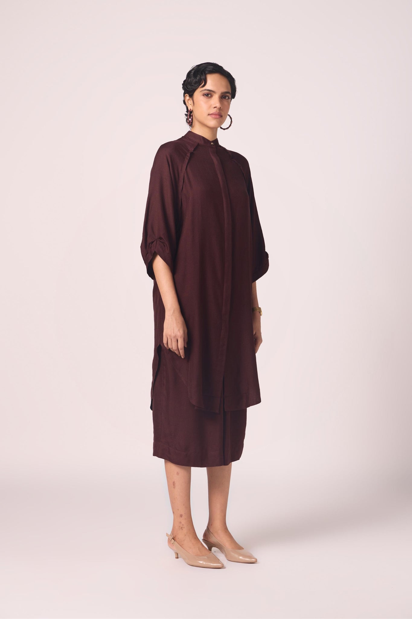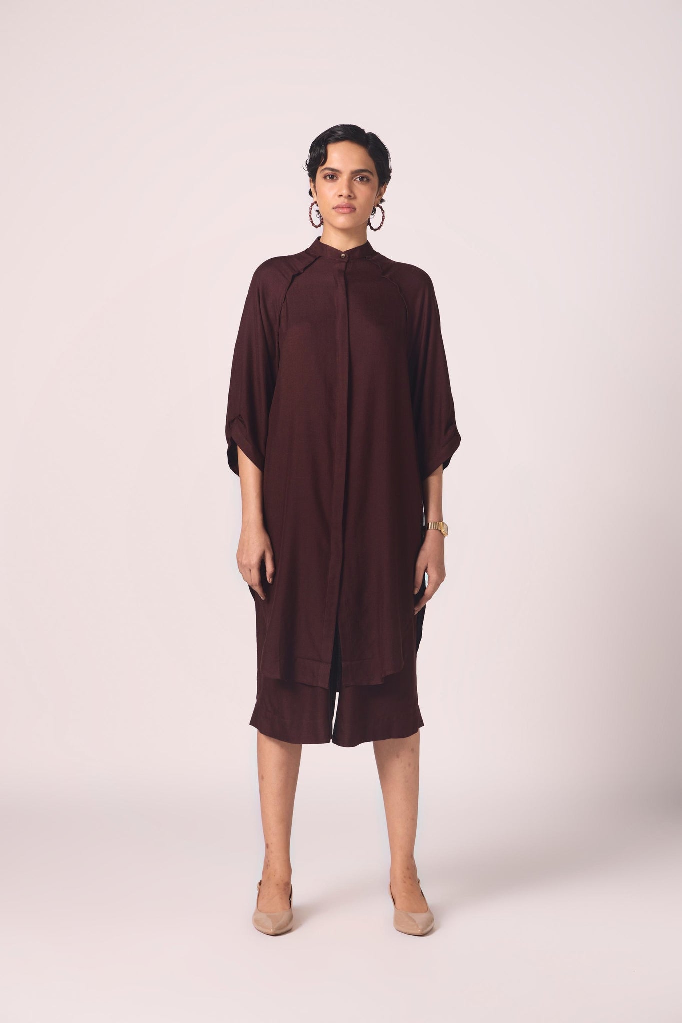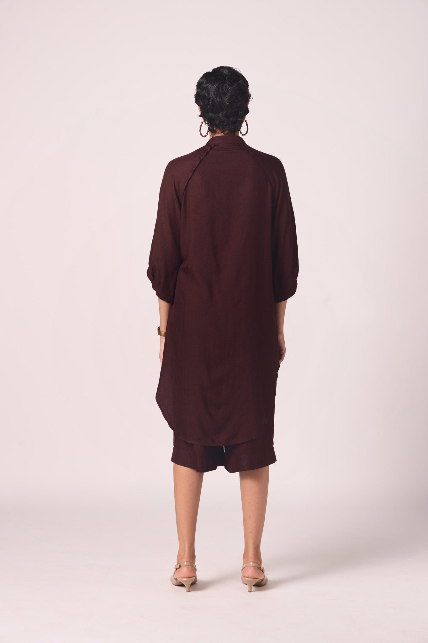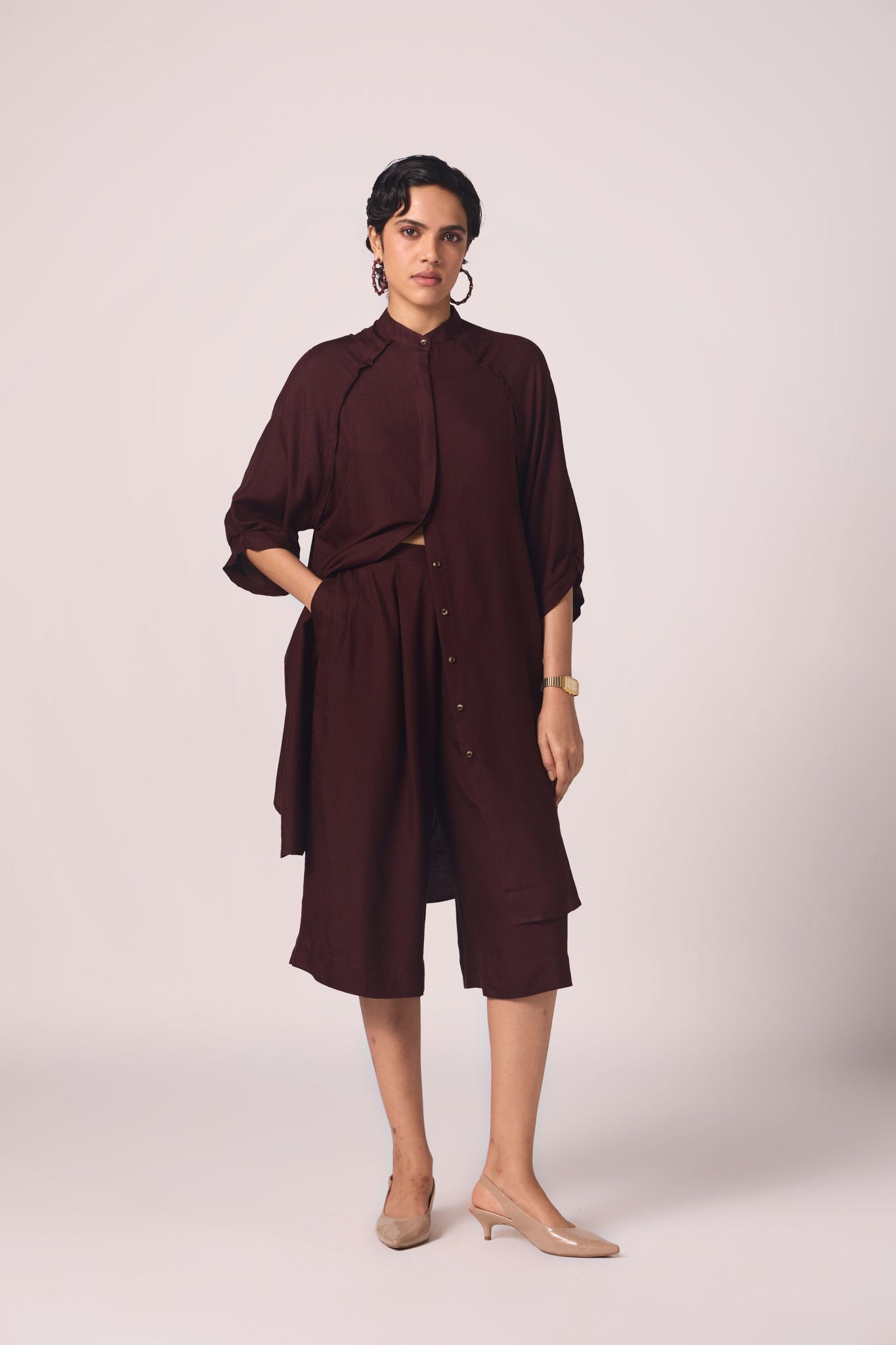 A pairing that moves with quiet confidence.The tunic falls with fluid ease, cropped trousers lend modern sharpness. Together, the set carries ceremony without weight and everyday wear without compromise.