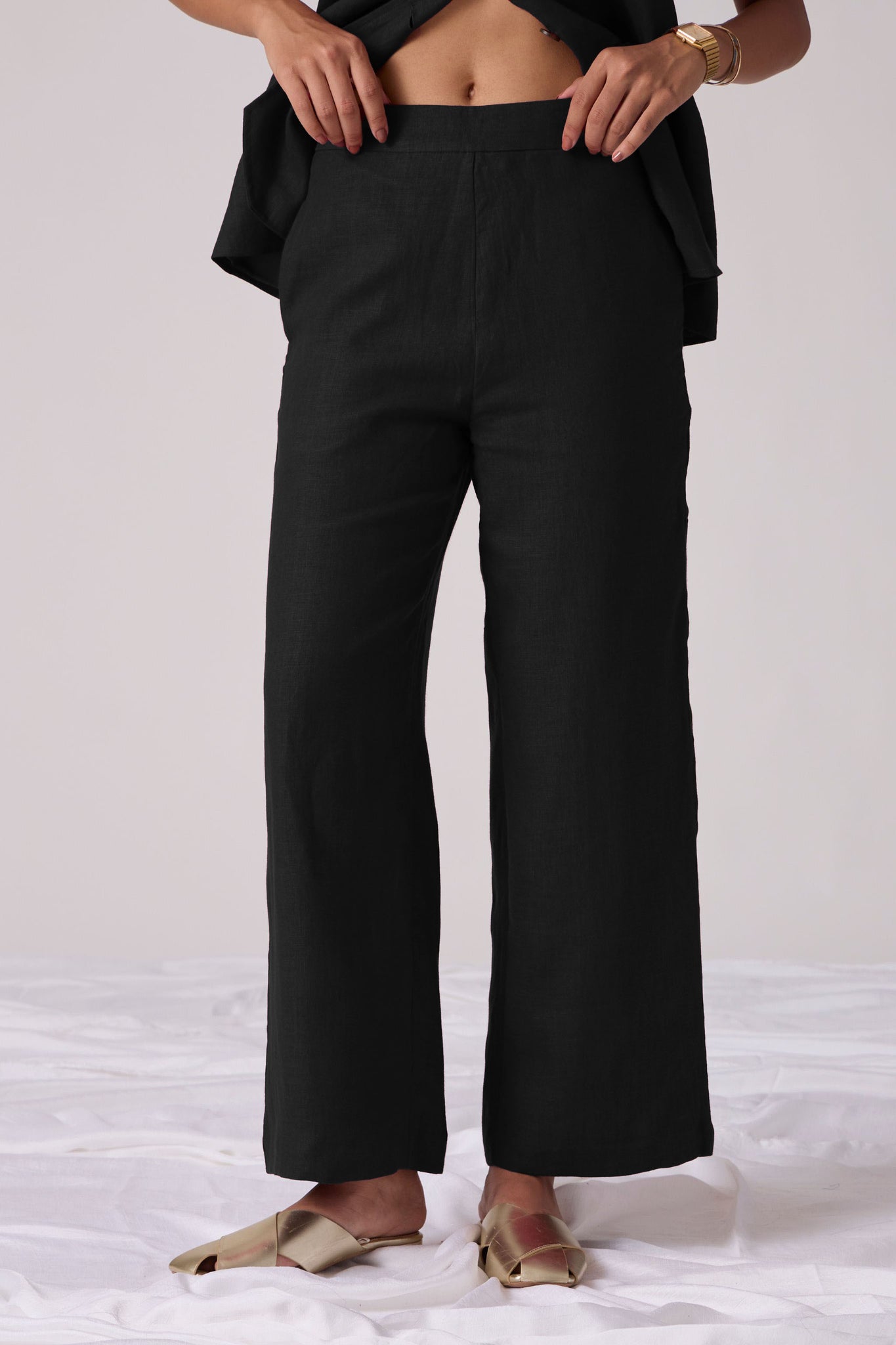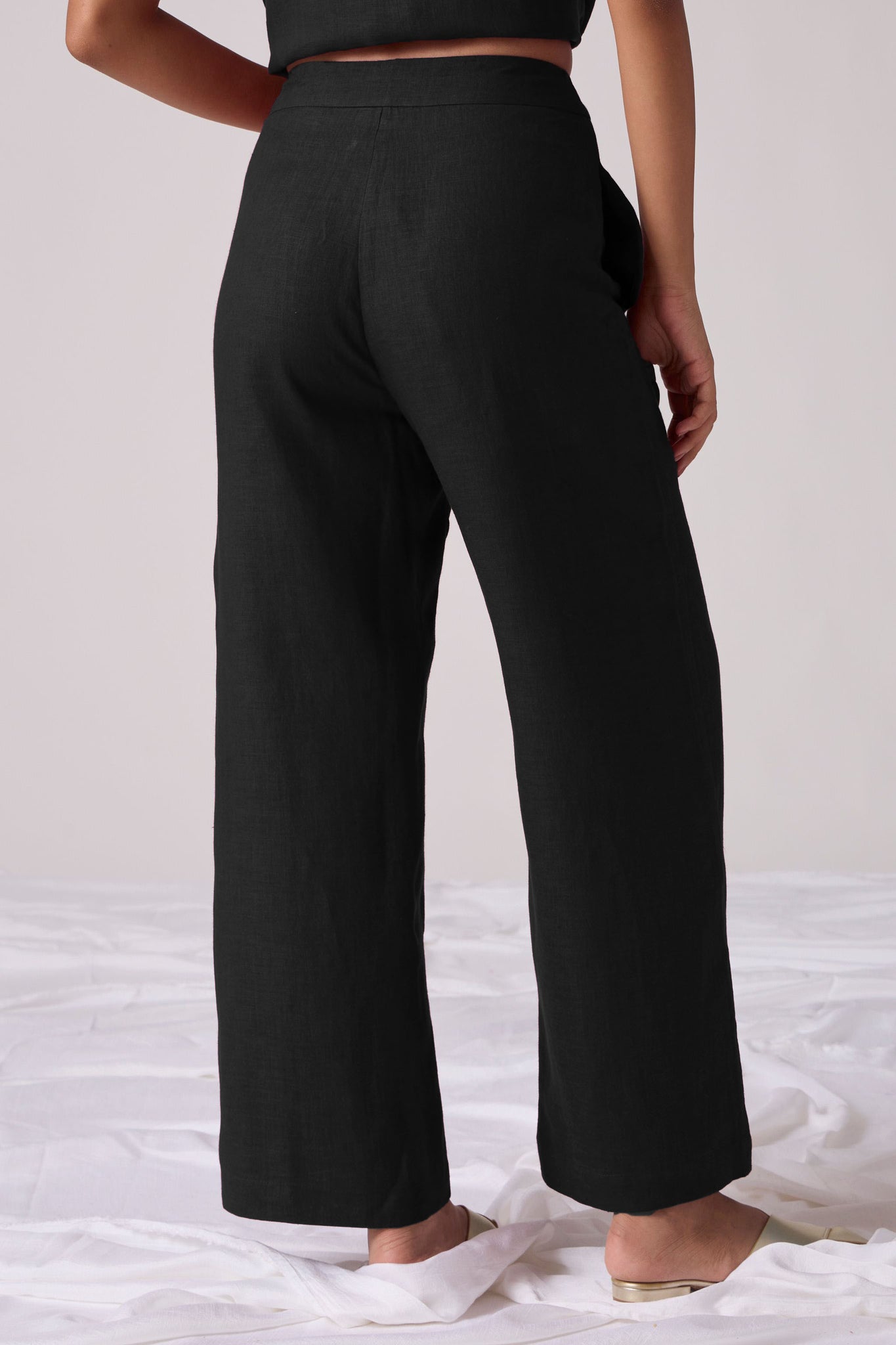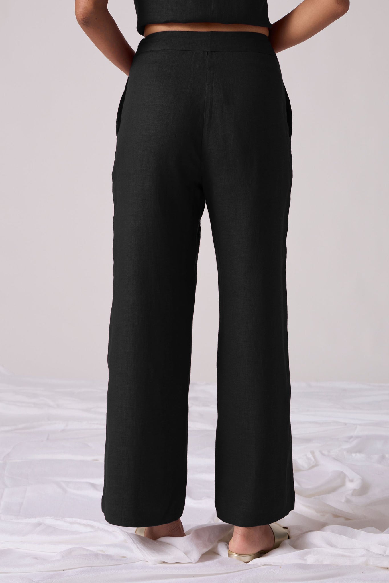 Paired with mid-rise linen cotton trouser that feature in-seam pockets and a side zipper fastening.