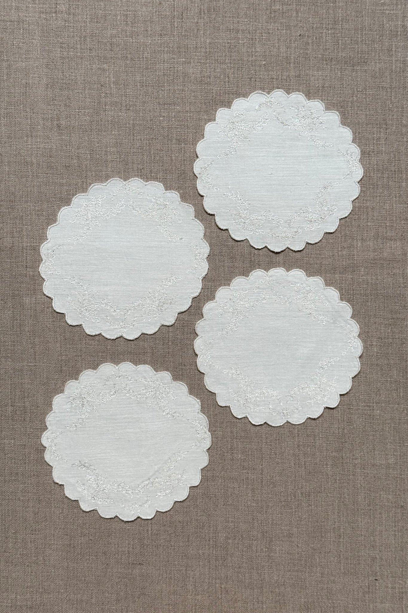 These hand-embroidered coasters combine practicality with artistry, making them perfect for gifting or enhancing your table decor.